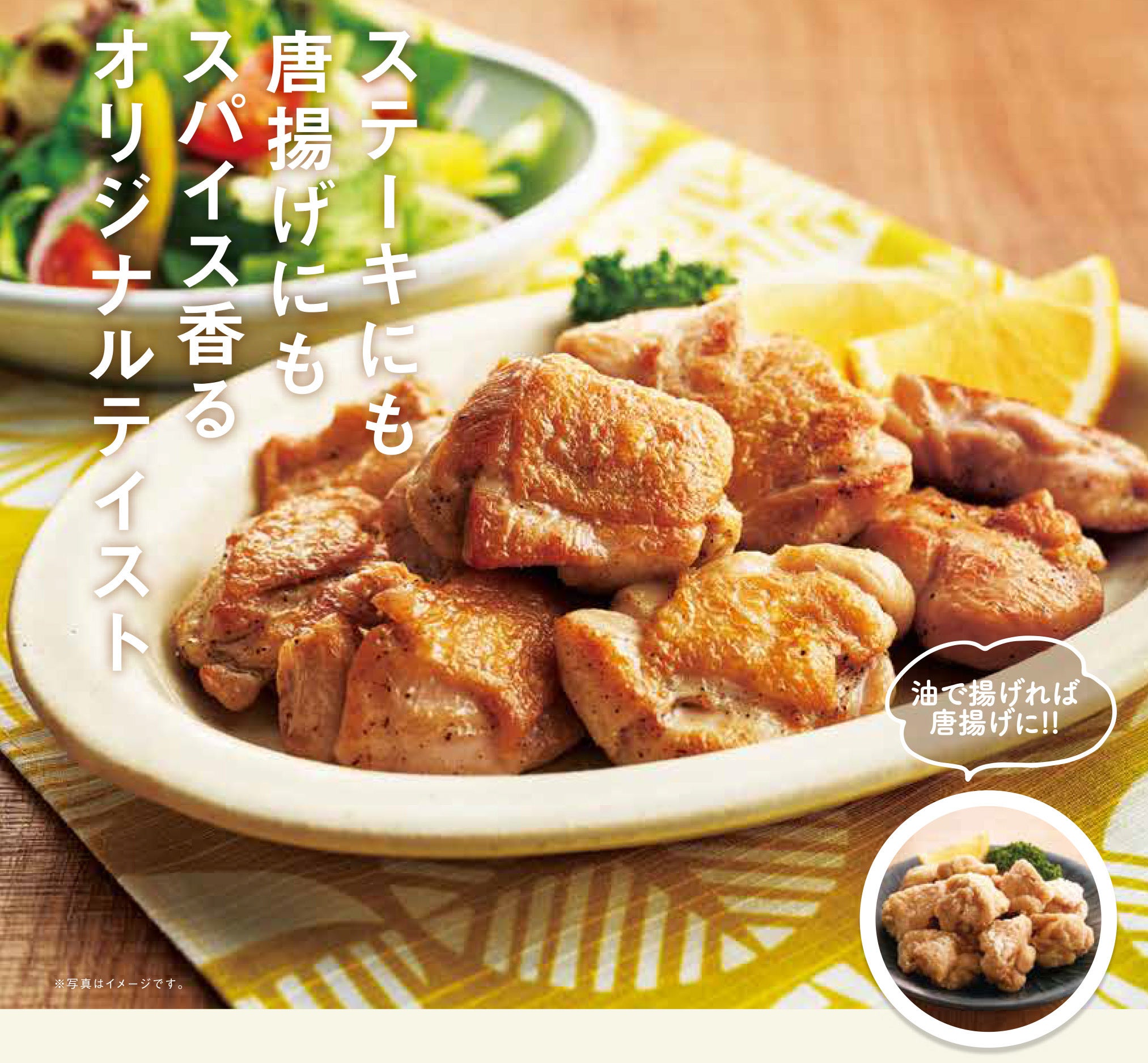 片栗粉をつけて揚げれば唐揚げ、焼けば一口ステーキになり、アレンジも自在です!