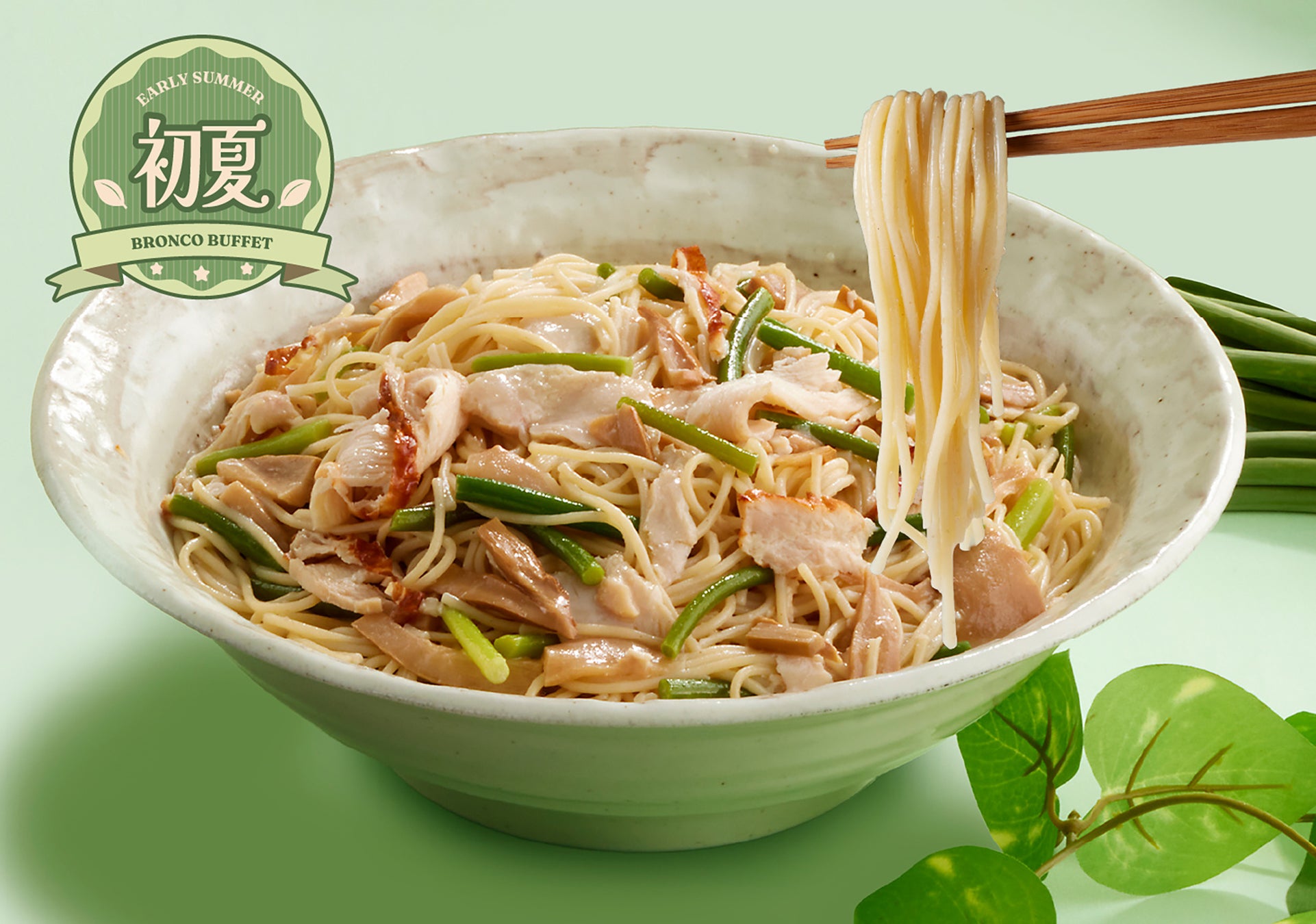 シャキシャキとしたにんにくの芽、鶏肉、パスタを鶏の旨みが凝縮したまろやかでコクのあるソースで絡め、鶏白湯まぜそば風にアレンジしたパスタです。