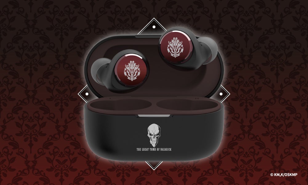 チャージングケースには『アインズ』のシルエットを配置し、イヤホン本体にはナザリックのロゴをあしらった特別仕様。黒を基調とした配色とデザインは高級感を演出。オーバーロードファンなら必携の一品です。