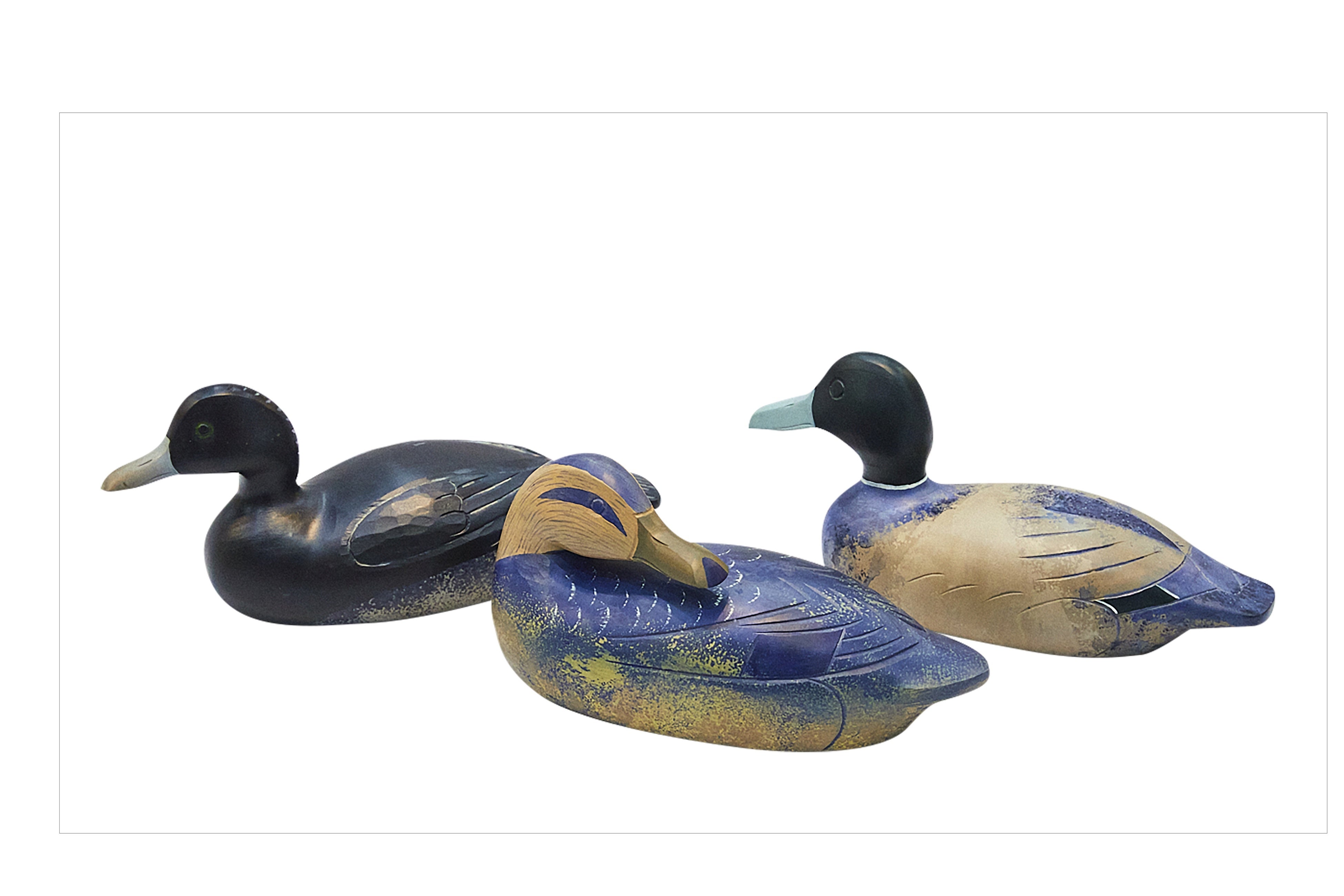 木彫りの鴨が愛くるしいデコイとアートなワインセット