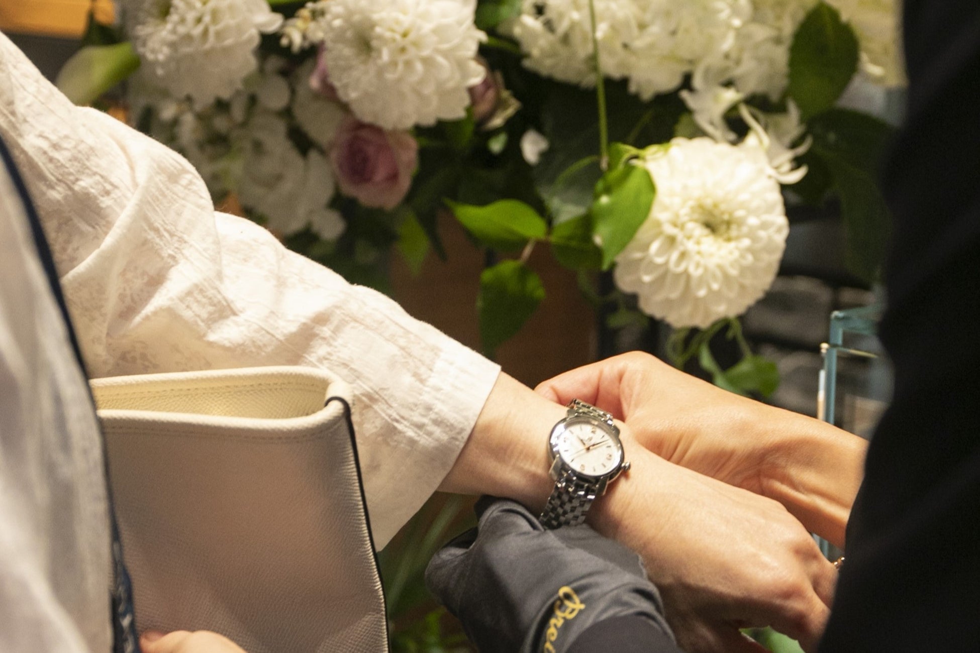 会場となったブライトリング ブティック 表参道は、レディ プレミエのカラーを想起させる鮮やかな装花で彩られ、華やかな香りに包まれました。訪れた参加者たちは新作を手に取りながら、特別なひとときをお楽しみいただきました。