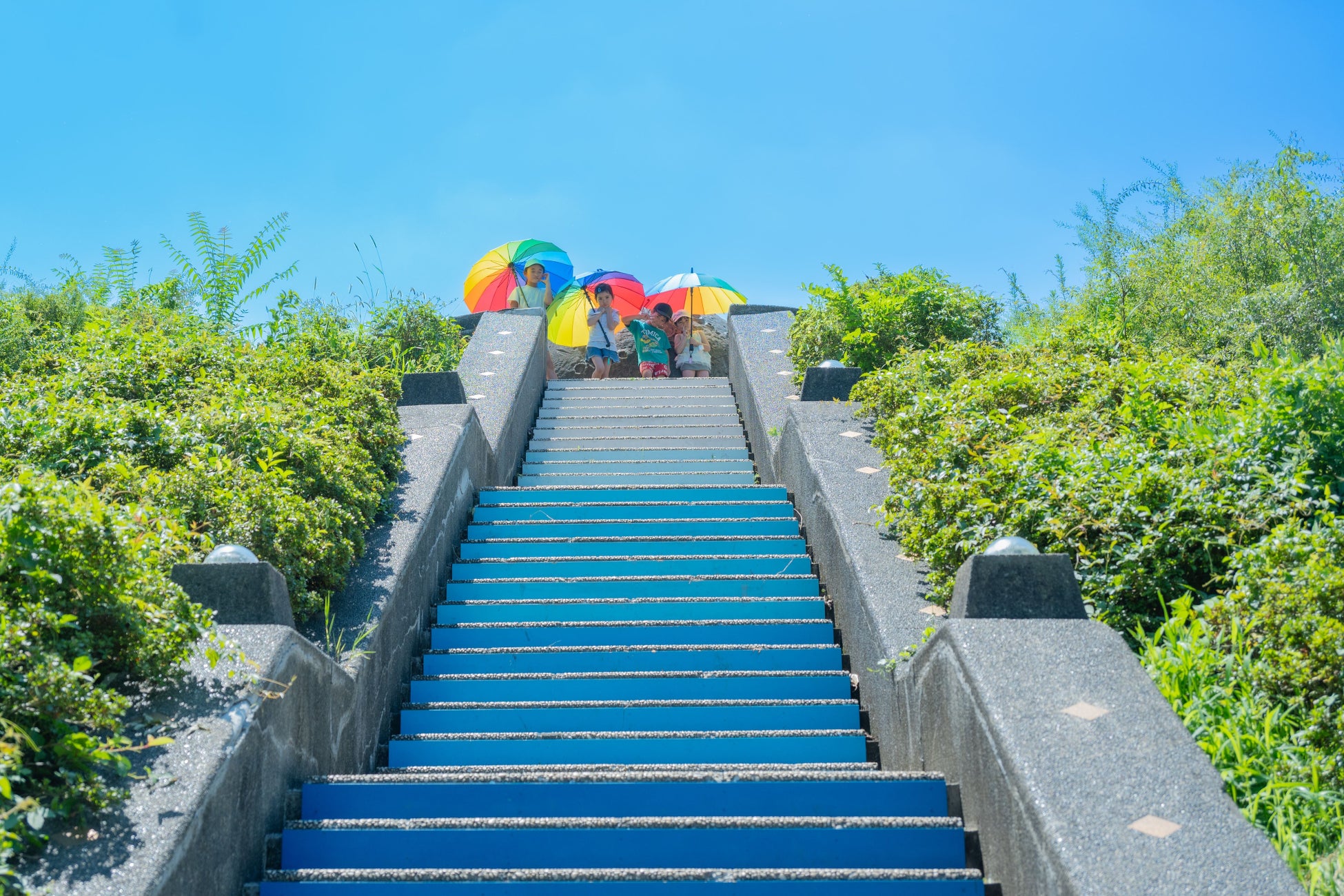 定番の花畑だけでなく、園内各所に多彩なフォトスポットをご用意しました。中でもかたらいのイチョウ並木の「イチョウリフレクション」は夏シーズン初登場。紅葉時期とは違った風景をお楽しみいただけます。レインボーアンブレラを持って、お気に入りのフォトスポットを探してみてはいかがでしょうか?