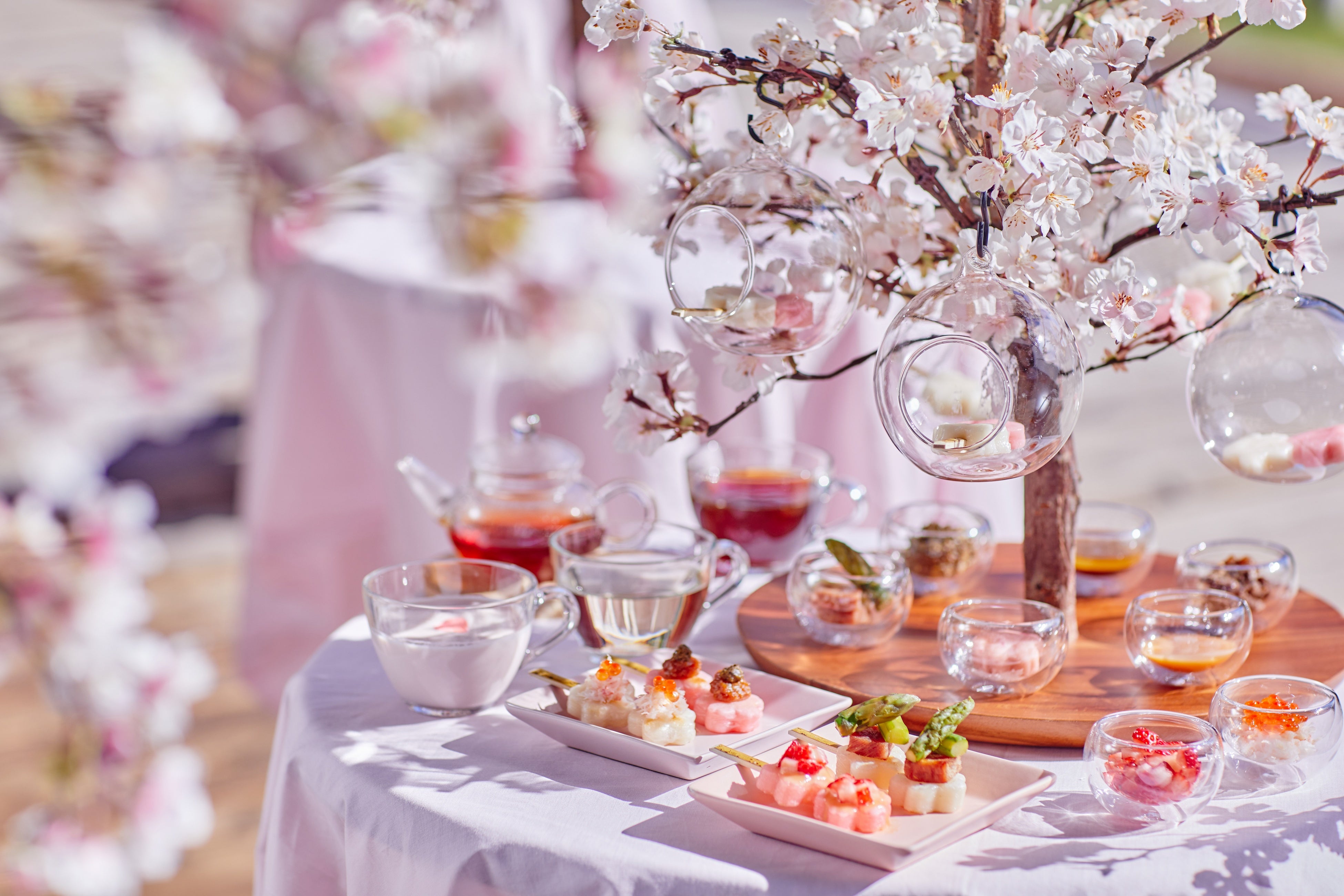 今年はお花見団子の味を引き立てるお茶のほかに、お花見酒も提供します。お花見酒はロゼスパークリングワイン、日本酒、桜のビール、苺とホエーのカクテルの4種類を用意。見た目も春らしいお花見酒が、お花見気分を盛り上げます。お茶は、定番の紅茶のほかに、ほんのりと甘い「白樺ティー」や桜の香りが華やぐ「桜ラテ」など、さまざまな味わいの6種類のお茶を用意。お食事系のお花見団子には、紅茶や白樺ティーを合わせることでさっぱりした味わいになるのが特徴です。お花見酒もお茶も好きなだけ堪能することができるので、さまざまなトッピングのお花見団子とあわせて楽しめます。