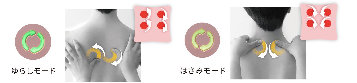 本製品には「ゆらしモード」以外に、首や肩のコリをほぐす「はさみモード」をご用意しています。