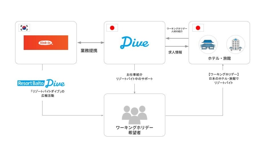 マイスファクトリーが運営する「Sink-in(シンクイン)」は、韓国国内で広報活動やマーケティングに強みを持つ企業であり、この提携を通じて「リゾートバイトダイブ」の認知度を韓国国内で向上させることで、日本でのリゾートバイトを希望する韓国人求職者へのアプローチを強化して参ります。