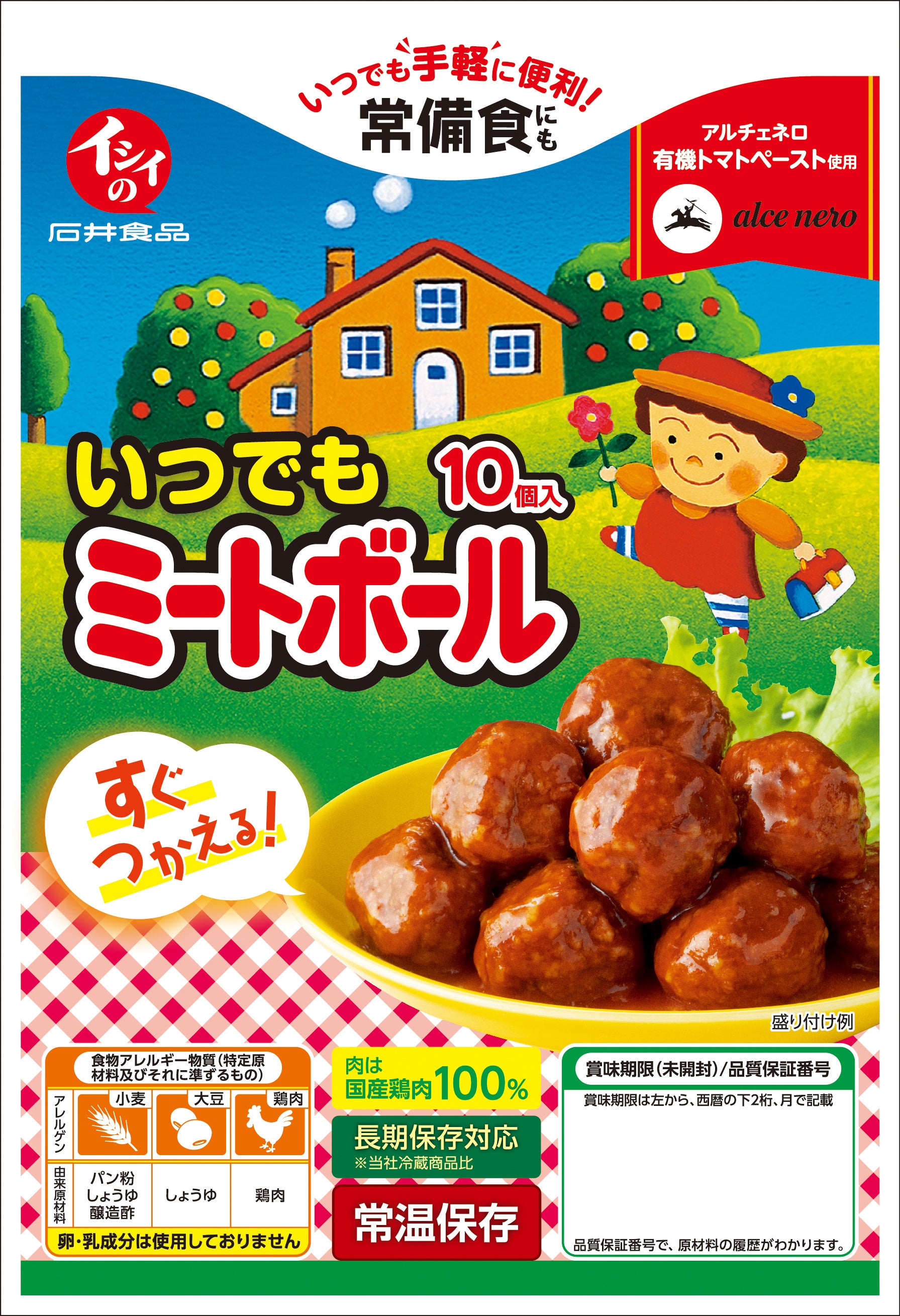 『いつでもミートボール』は常温で長期保存ができるため、ローリングストックはもちろん、非常食としても活躍します。持ち運びもしやすく、キャンプや登山などアウトドアシーンにも最適です。原材料はできる限りシンプルに、そして変わらないイシイのミートボールのおいしさを楽しんでいただけるよう素材を追求し、『イシイのおべんとクン ミートボール』とそのまま同じ、卵・乳成分を使用しないレシピを採用しています。