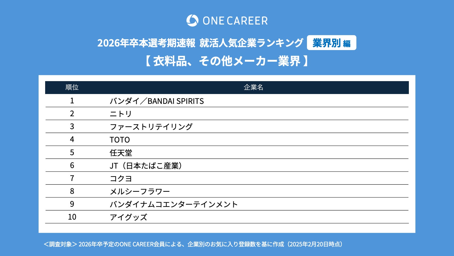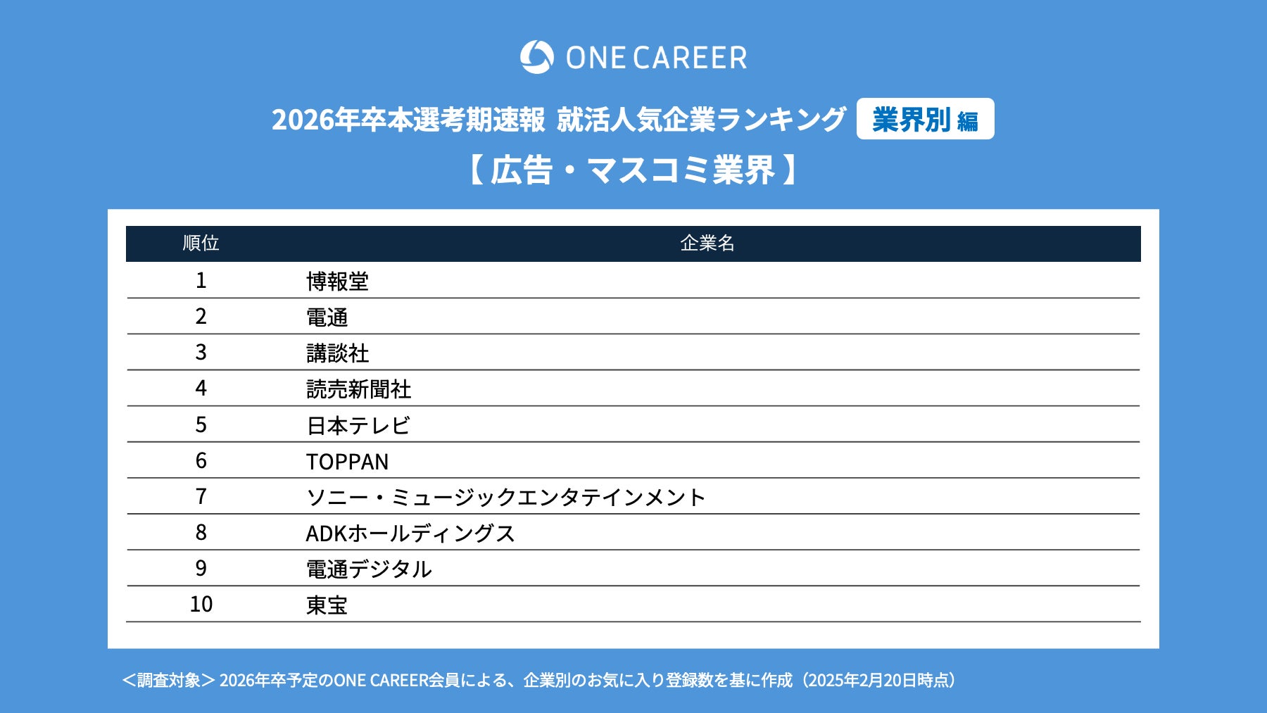 「ワンキャリア就活人気企業ランキング 【業界別編】26卒本選考期速報」を公開