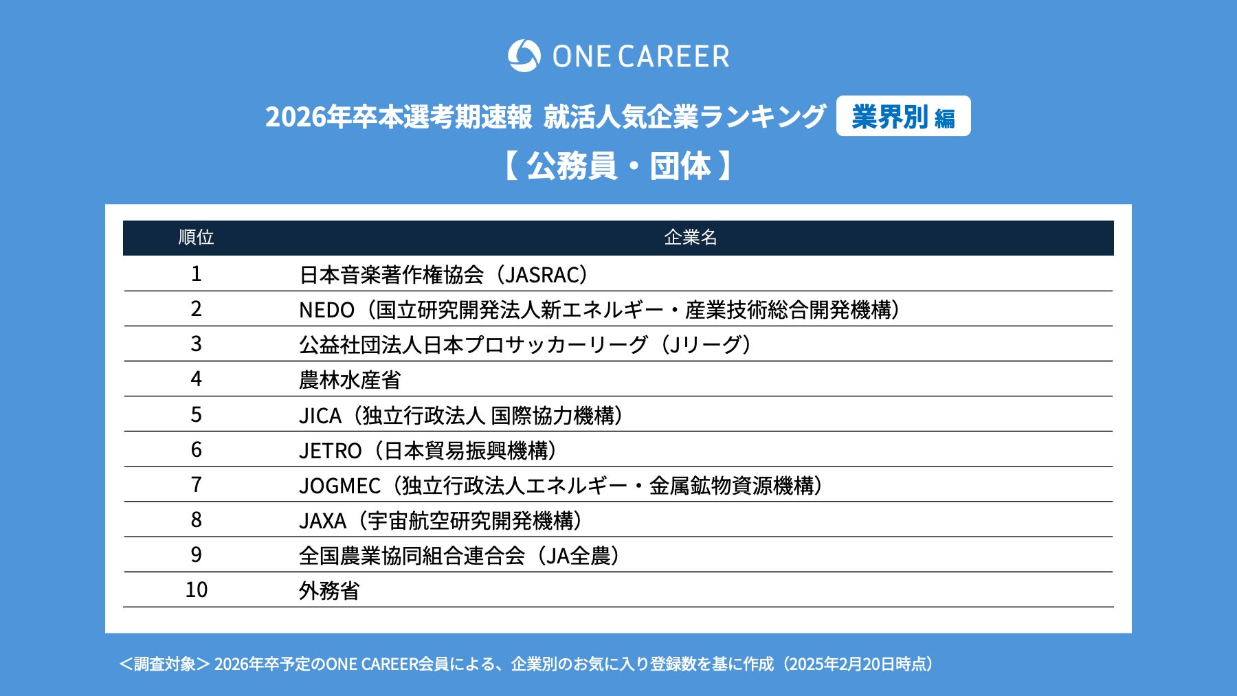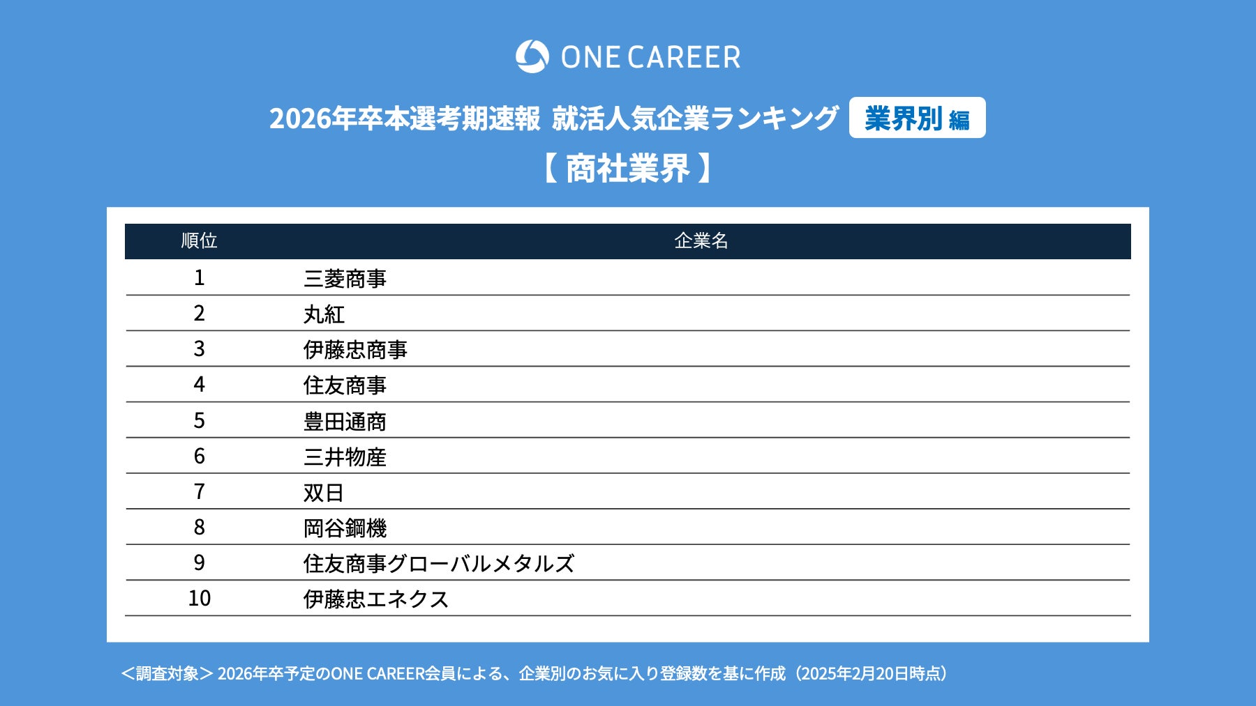 就活人気企業ランキング【業界別編】(26卒本選考期速報)順位一覧