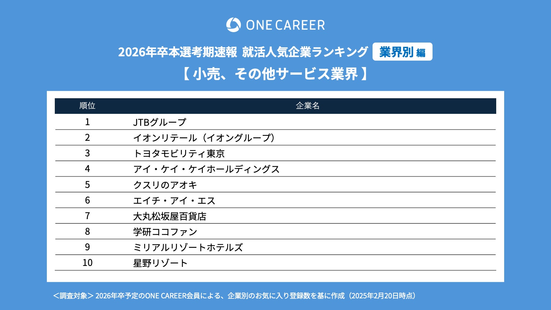調査名 :就活人気企業ランキング【業界別編】26卒本選考期速報
