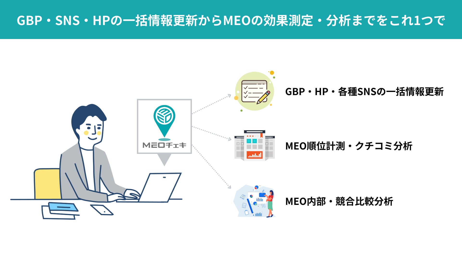 MEOチェキとは、店舗集客に必要不可欠なGoogleビジネスプロフィールの管理・分析が行えるツールとして、2019年8月にリリースしたMEOツールです。