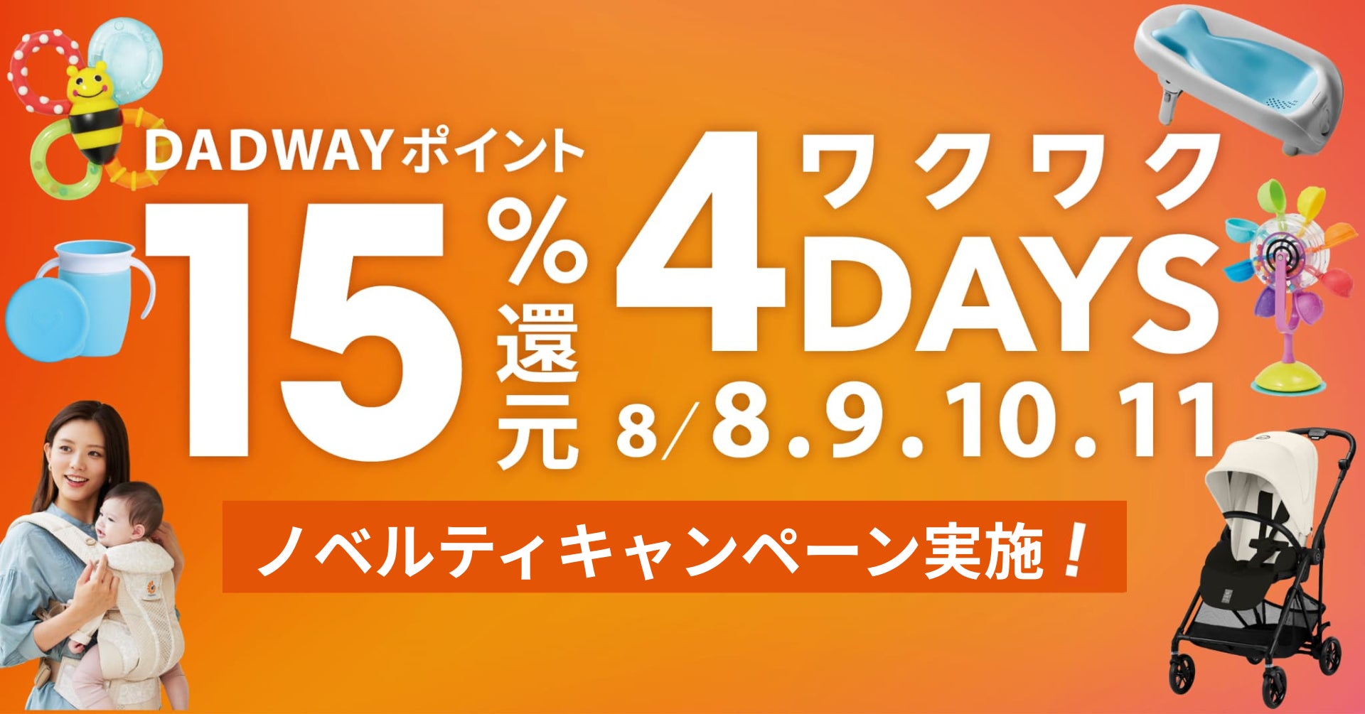 株式会社ダッドウェイ(本社:神奈川県横浜市、代表取締役社長:大野 浩人)は、ダッドウェイ店舗・オンラインストアにて、日頃のご愛顧への感謝の気持ちを込めた特別企画「ワクワク4DAYS」を2025年8月8日(金)~11日(月)の4日間限定で開催いたします。