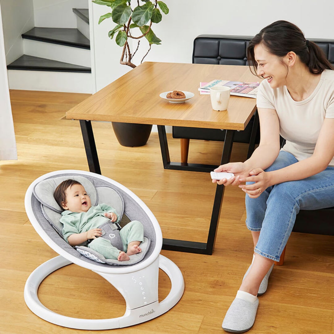 心地よい横揺れで赤ちゃんごきげん。育児のすき間時間を作る電動ベビースウィング。抱っこされているかのような自然な左右の揺れ、お気に入りのサウンドを流せるBluetooth®対応、移動も楽々の軽量でコンパクトなボディといった高い機能性が魅力。スマートな子育てライフを提案します。