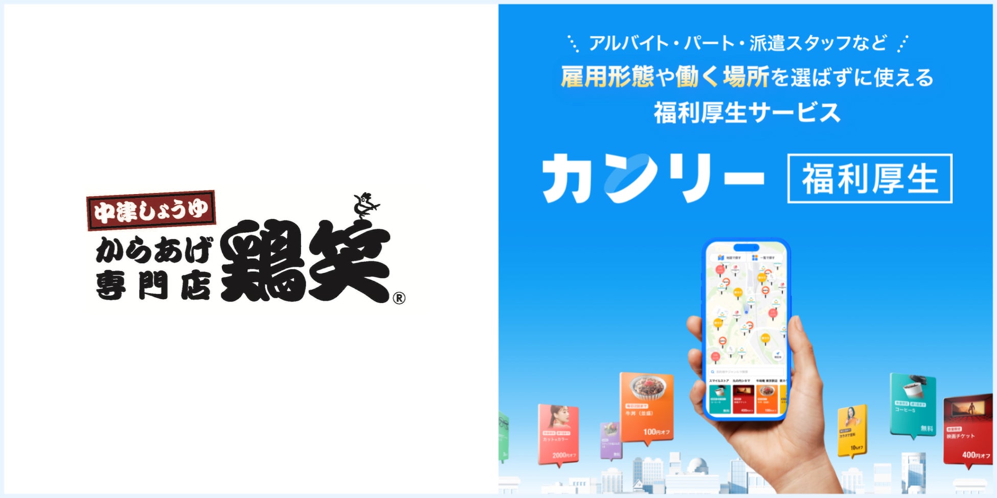 からあげ専門店 鶏笑を手がける株式会社NISは、2024年2⽉より株式会社カンリーが提供する福利厚生サービス『カンリー福利厚生(フクリー)』にクーポン掲載パートナーとして参加し、カンリー福利厚生(フクリー)上に限定クーポンの掲載が決定しましたので、お知らせいたします。
