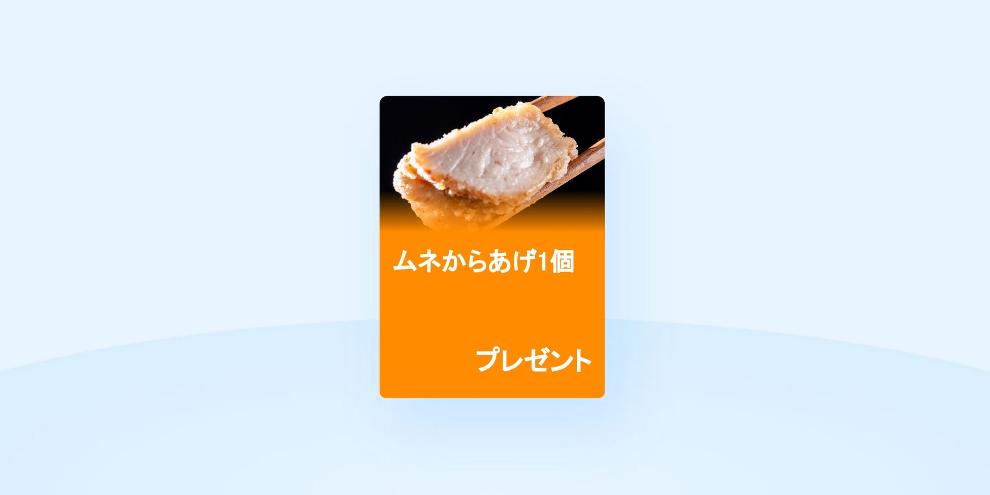 「500円以上のお買い上げでムネからあげ1個プレゼント」のクーポンをご利用頂けます。
