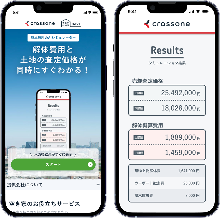 当社は、解体工事領域で、全国2,300社以上の専門工事会社と施主をマッチングするサービス「クラッソーネ」を運営しており、これまでに累計16万件以上のご利用者実績(※2)があります。また、「解体費用シミュレーター」や「すまいの終活ナビ」を利用した公民連携での空き家対策事業が、令和3年度から令和5年度の国土交通省「住宅市場を活用した空き家対策モデル事業」に3年連続で採択され、現在は全国165自治体(かすみがうら市除く)と公民連携による空き家対策を進めています。