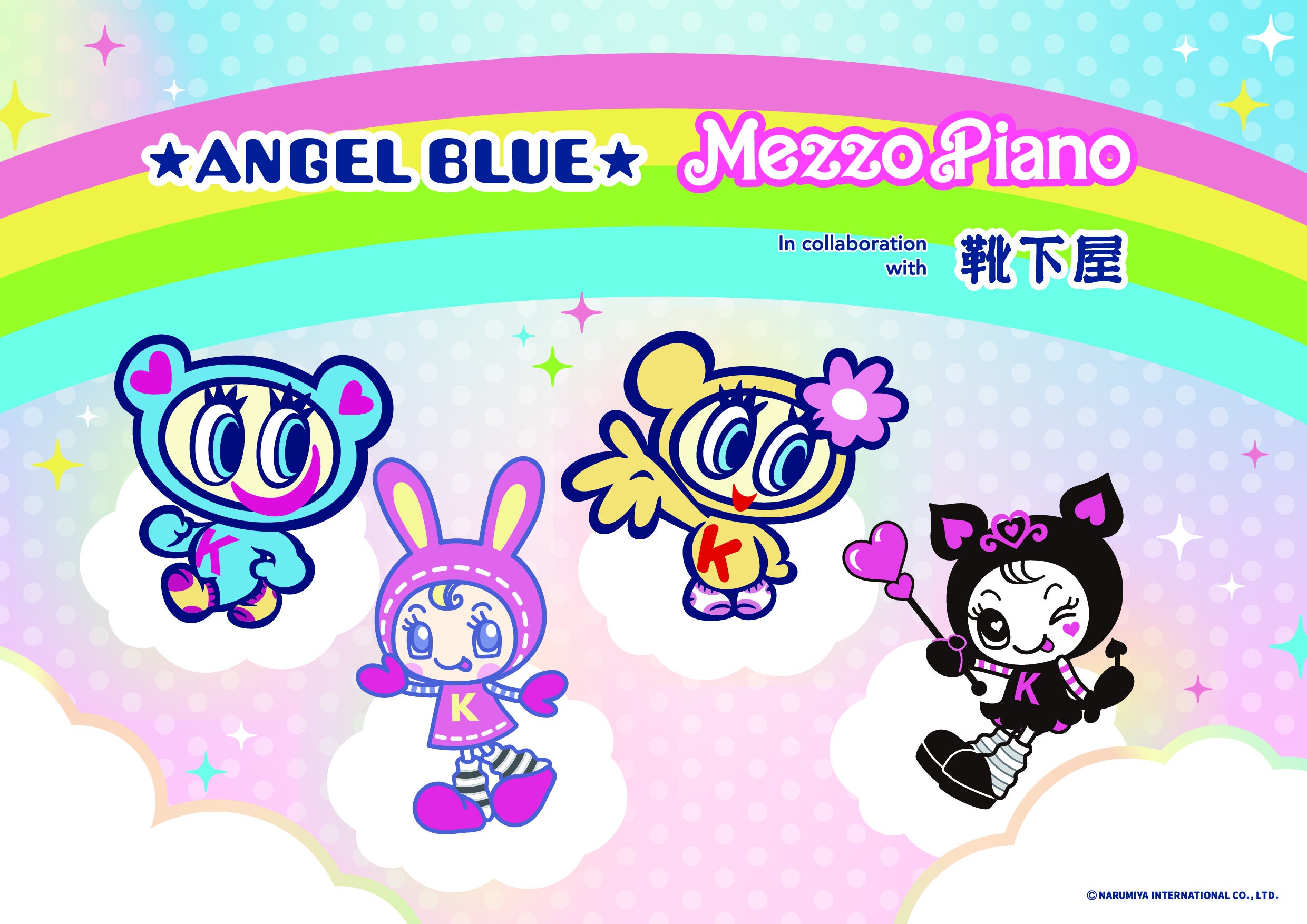 「靴下屋」「Tabio」「Tabio MEN」などの靴下専門店を展開・運営するタビオ株式会社(本社:大阪市浪速区、代表取締役社長:越智 勝寛)は、株式会社ナルミヤ・インターナショナル(本社:東京都港区、代表取締役社長執行役員:保坂 大輔)のブランド「ANGEL BLUE(エンジェルブルー)」「mezzo piano(メゾ ピアノ)」とコラボレーションした靴下を、5月1日(金)より全国の「靴下屋」149店舗およびTabio公式オンラインストアにて販売いたします。“平成レトロ”としてZ世代からも注目を集める両ブランドと靴下屋のコラボは今回が初めてとなります。