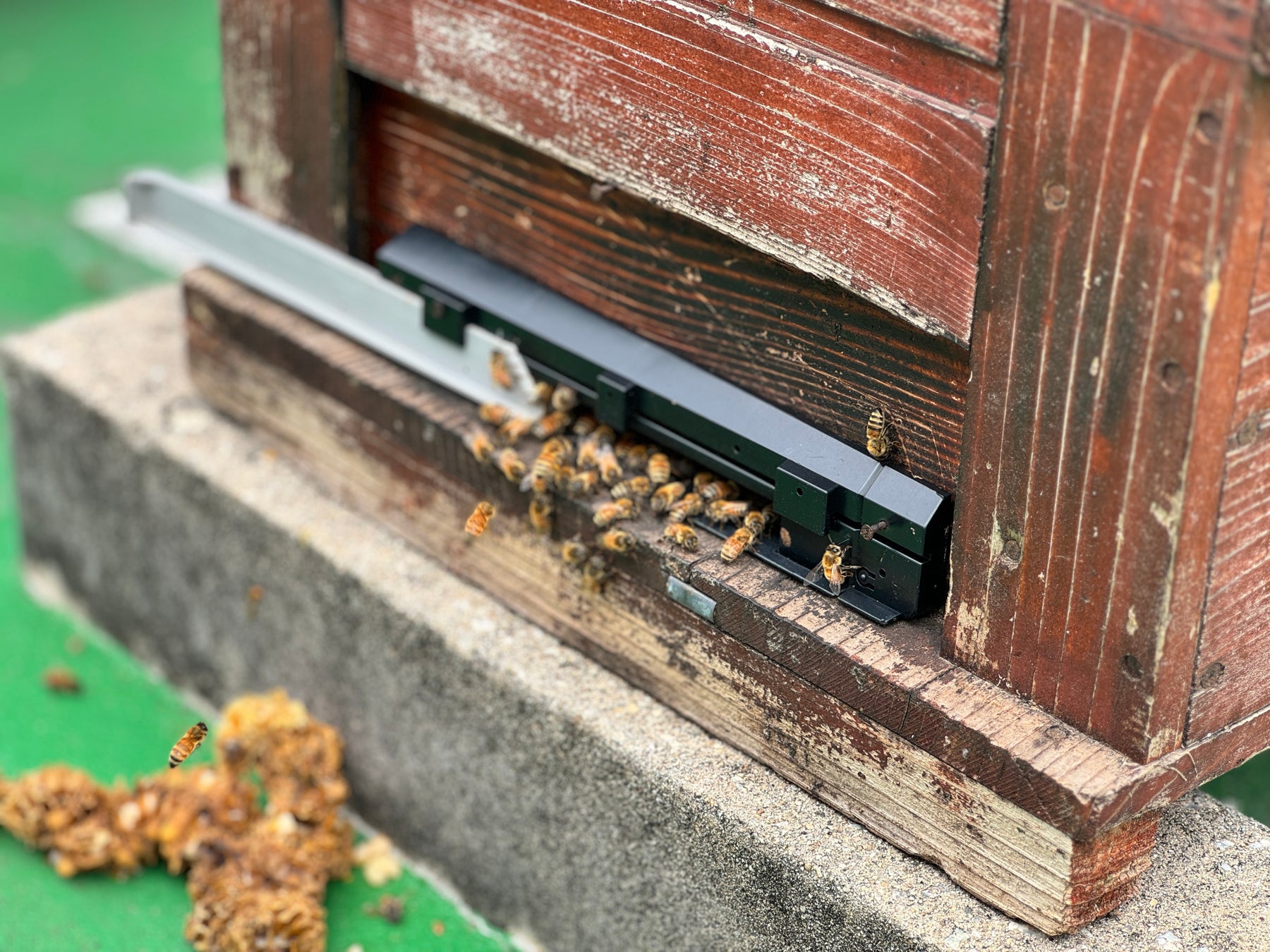 昨年同様、暖かくなり始めた3月下旬に巣箱を設置し、ミツバチが充分活動できる環境を整えました。春先の花の開花と共に、人工島ポートアイランド内の桜やツツジなどの蜜源から花蜜が集められ、巣箱に運ばれたのち蜂蜜を採取いたします。