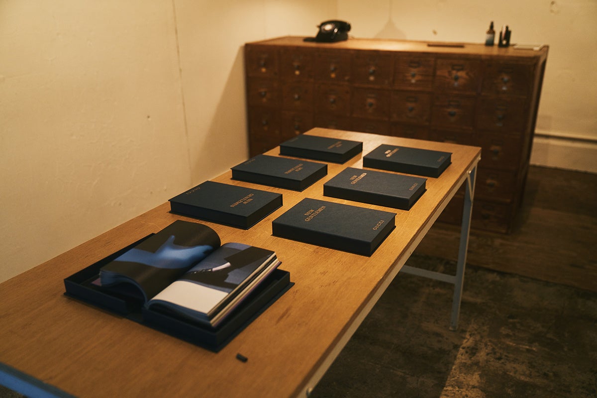 「NEW GENTLEMEN」は、グッチがメインスポンサーとしてサポートする長野県の御代田町で開催中の浅間国際フォトフェスティバルで、7人全写真家による作品が特別展示として公開中(9月4日まで)。今回の森岡書店では、写真集の他に、この場所のために7人の写真家の中から、細倉真弓が森岡書店の代表である森岡督行をモデルに撮影した作品が選ばれ展示されています。