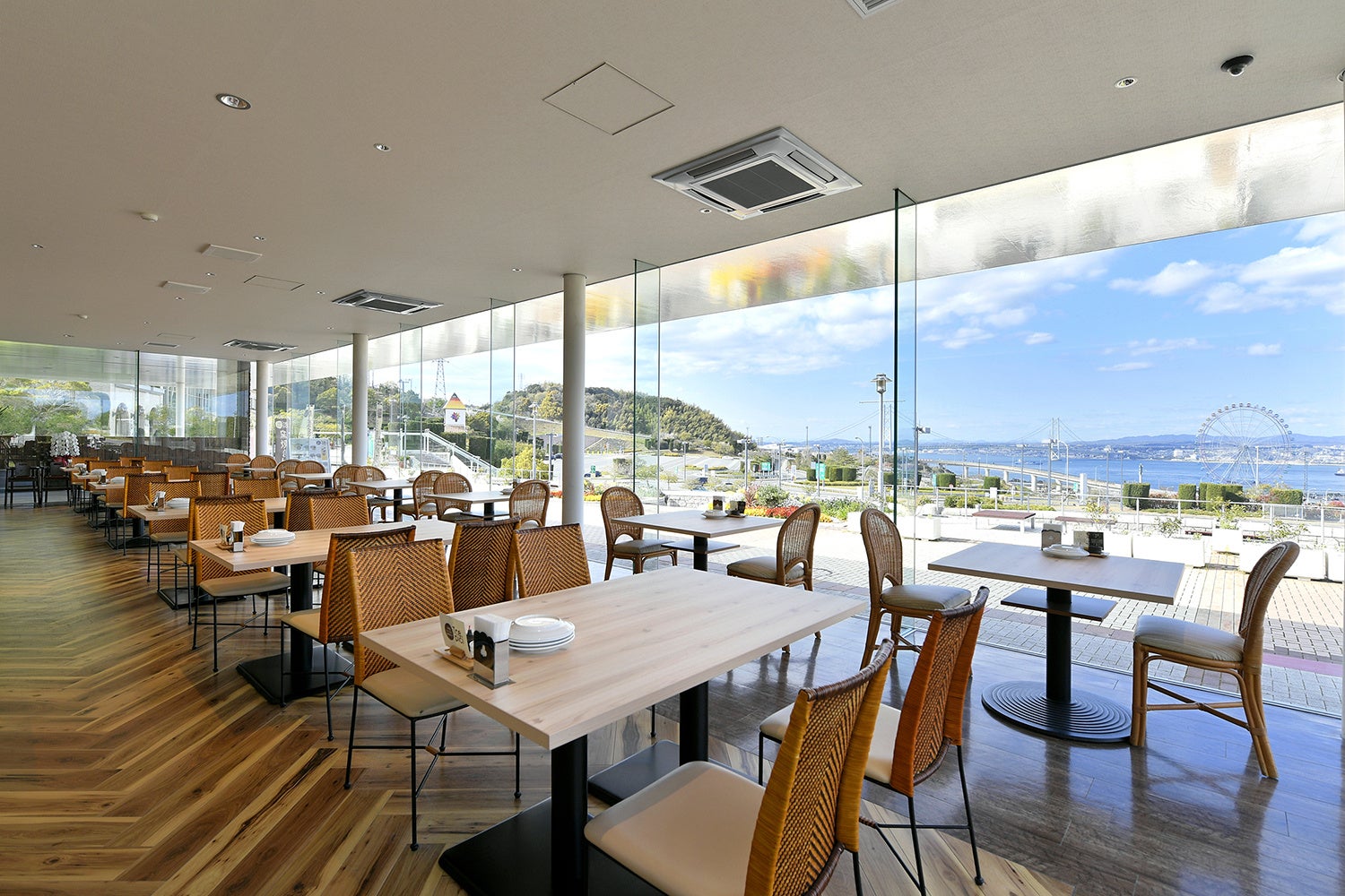 兵庫県立淡路島公園内に位置し、島内の玄関口となる「淡路ハイウェイオアシス」。明石海峡を眺めながら、地元ならではの旬の食材を存分に味わえるレストランや、淡路島の特産品などショッピングが楽しめる淡路物産館を併設する、島の魅力ぎゅっと詰め込んだ施設です。休憩だけでなく、1日中遊んで過ごせる施設です。