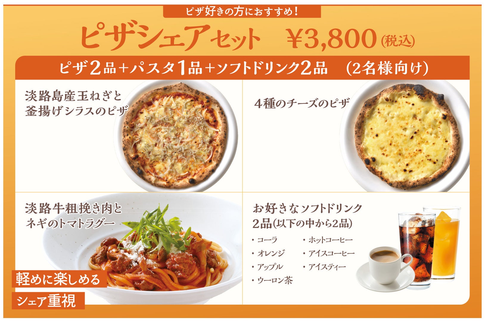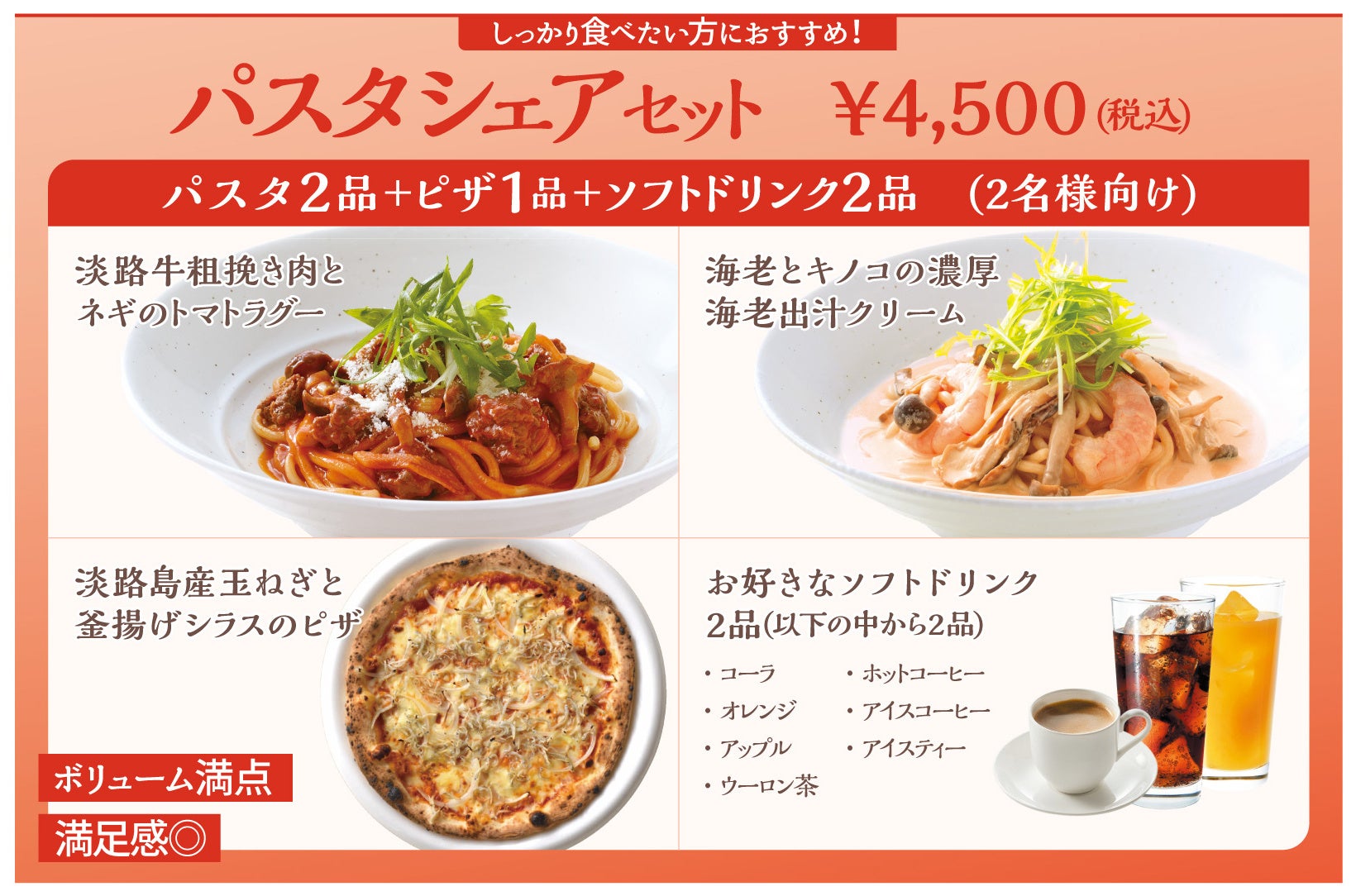 お得に2人でシェア 選べる2つの満足セット「パスタシェアセット」「ピザシェアセット」が、2026年4月7日(火)より提供開始