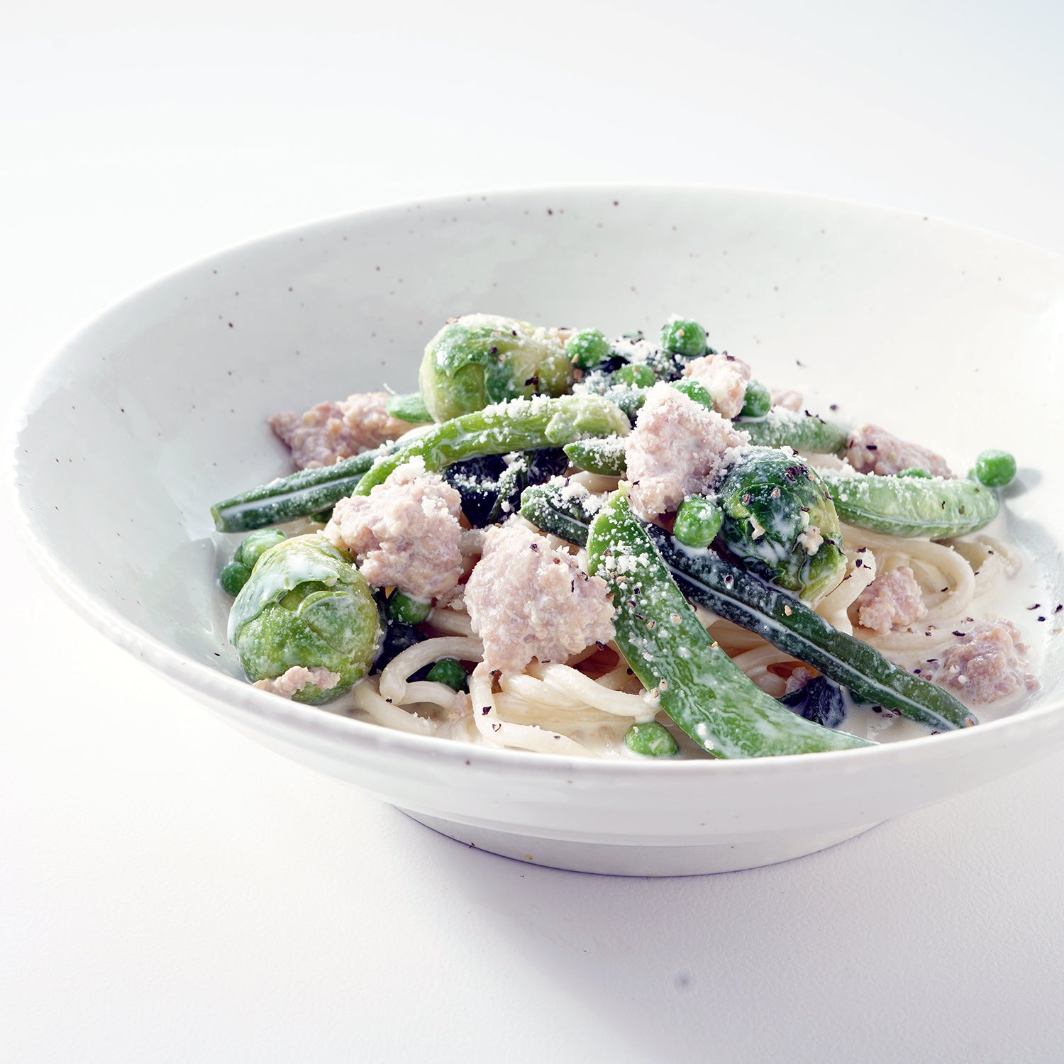 淡路どりの旨味と春野菜の瑞々しさを、出汁香るクリームソースで上品にまとめた季節のパスタ。 芽キャベツや菜の花など、春の味覚を贅沢に散りばめ、素材本来の甘みと香りを引き立てています。和の余韻が広がる、春だけの特別な一皿です。