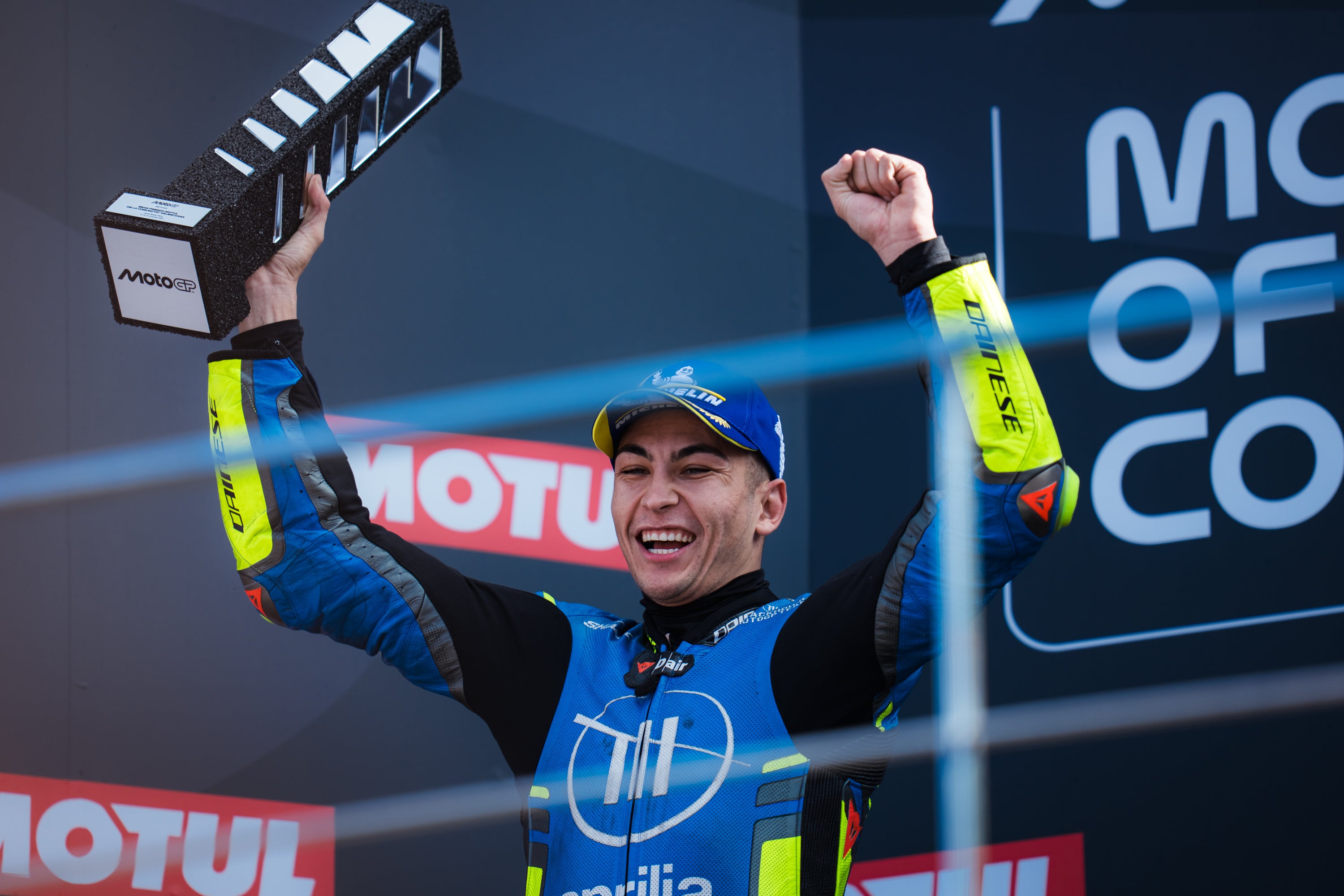今シーズンの主役の一人はマルコ・ベッツェッキと言っても過言ではないでしょう。アプリリアに移籍して最初のシーズンにこのイタリア人ライダーは、一からRS-GP25への適応に取り組み、その後着実に成長してヘレステストで転機を迎えました。その瞬間から、ベッツェッキ選手はアプリリアの確かなポテンシャルの感触をつかみ、選手権で最も競争力のあるライダーの一人となったのです。今年の彼の戦績は、メインレースで3回(シルバーストーン、ポルティマオ、バレンシア)の優勝、スプリントレースの3回(ミサノ、マンダリカ、フィリップアイランド)での優勝、合計15回の表彰台、そして5回のポールポジション(オーストリア、ミサノ、マンダリカ、ポルティマオ、バレンシア)という素晴らしいものでした。その結果、彼は353ポイントを獲得してチャンピオンシップシーズンを3位で終えることができ、これはアプリリアレーシングのライダーがMotoGPでこれまでに達成した最高の結果となったのです。