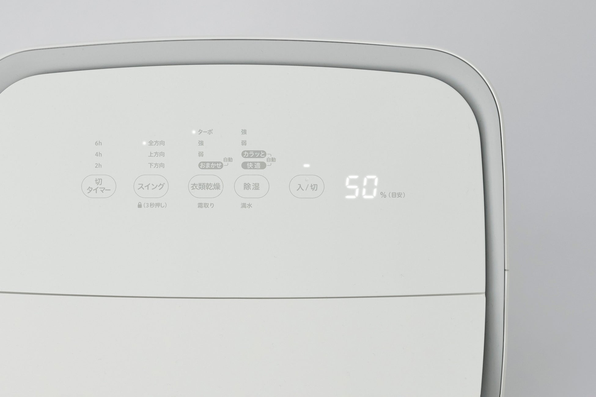 モード:除湿(弱、強、カラッと、快適)、衣類乾燥(弱、強、ターボ、おまかせ)