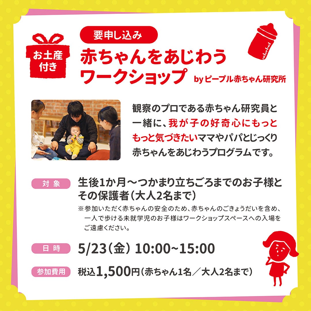 ※参加していただく赤ちゃんの安全のため、赤ちゃんのごきょうだいを含め、一人で歩ける未就学児のお子様はワークショップスペースへの入場をご遠慮ください。