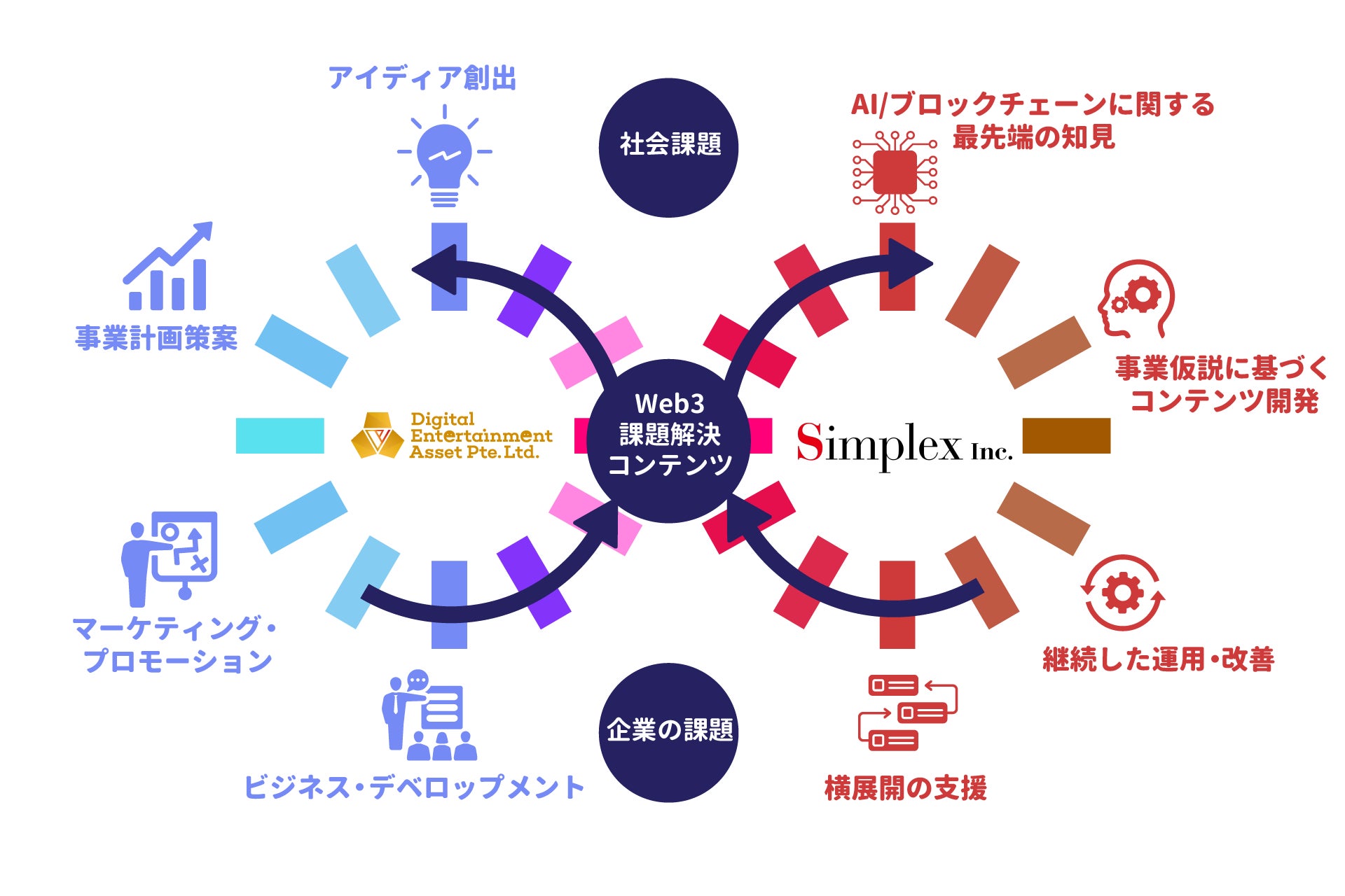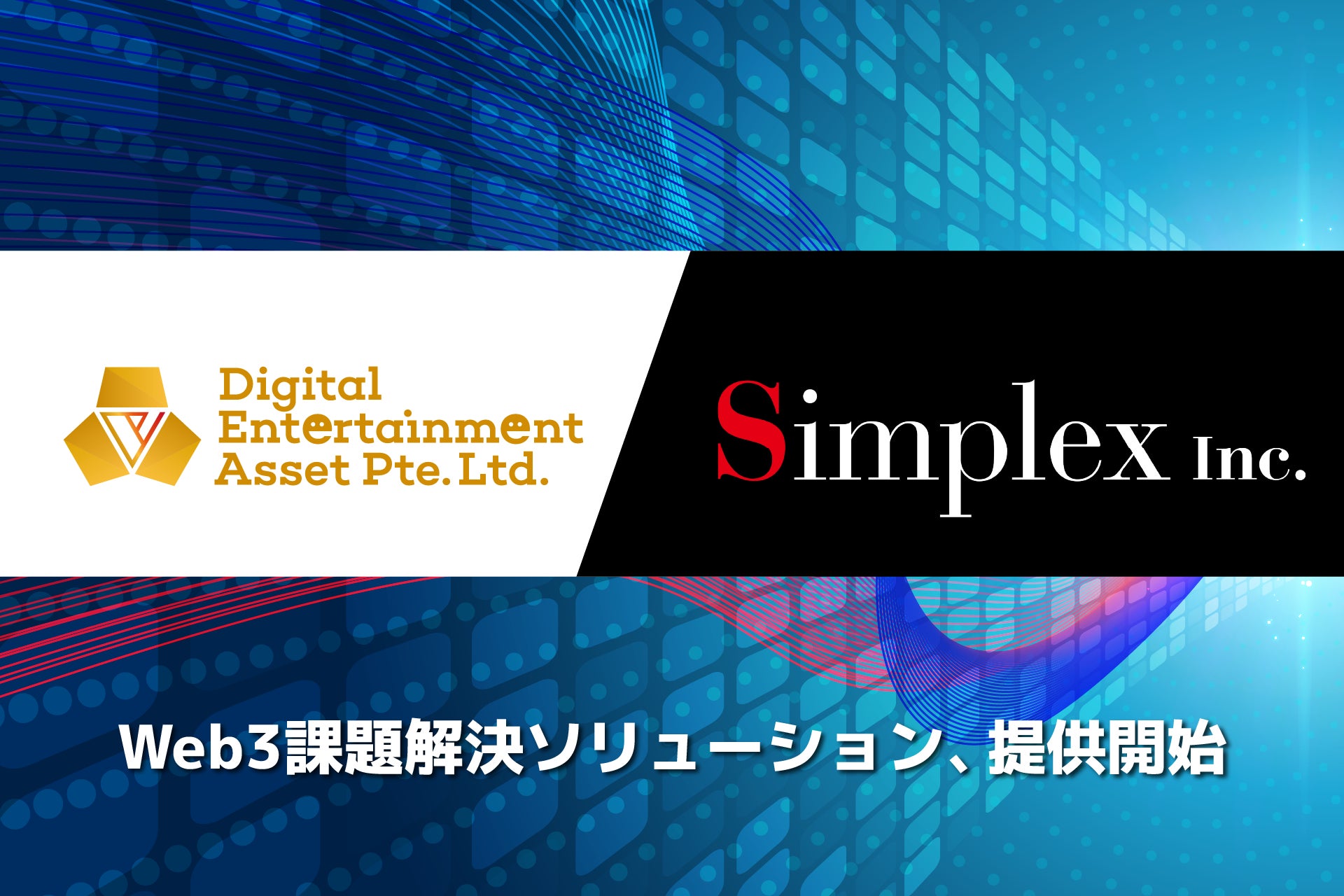 シンガポールを拠点にグローバルでGameFiプラットフォーム事業を展開するDigital Entertainment Asset Pte.Ltd.(本社:シンガポール、Founder & CEO:吉田 直人、Founder&Co-CEO:山田 耕三、以下、DEA)とシンプレクス株式会社(本社:東京都港区、代表取締役社長:金子 英樹、以下、シンプレクス)は、DEAがシンプレクスの技術を活用し、DePINをはじめとするweb3技術を活用した革新的な課題解決コンテンツやサービスの企画から開発・展開までを一貫してサポートする「web3課題解決ソリューション」の提供を開始したことをお知らせします。