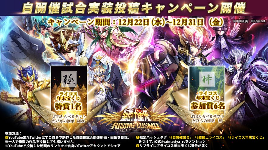 ライコスの最新情報は公式Twitter(@saintseiya_rc)随時発信中です! ぜひフォローして最新情報をチェックしてください!