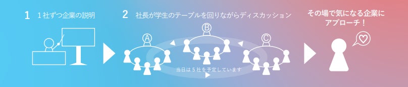 イベントの流れは以下の通りです。前向きに就活に取り組んでいる学生の皆さんは、ぜひこの機会をご活用ください!