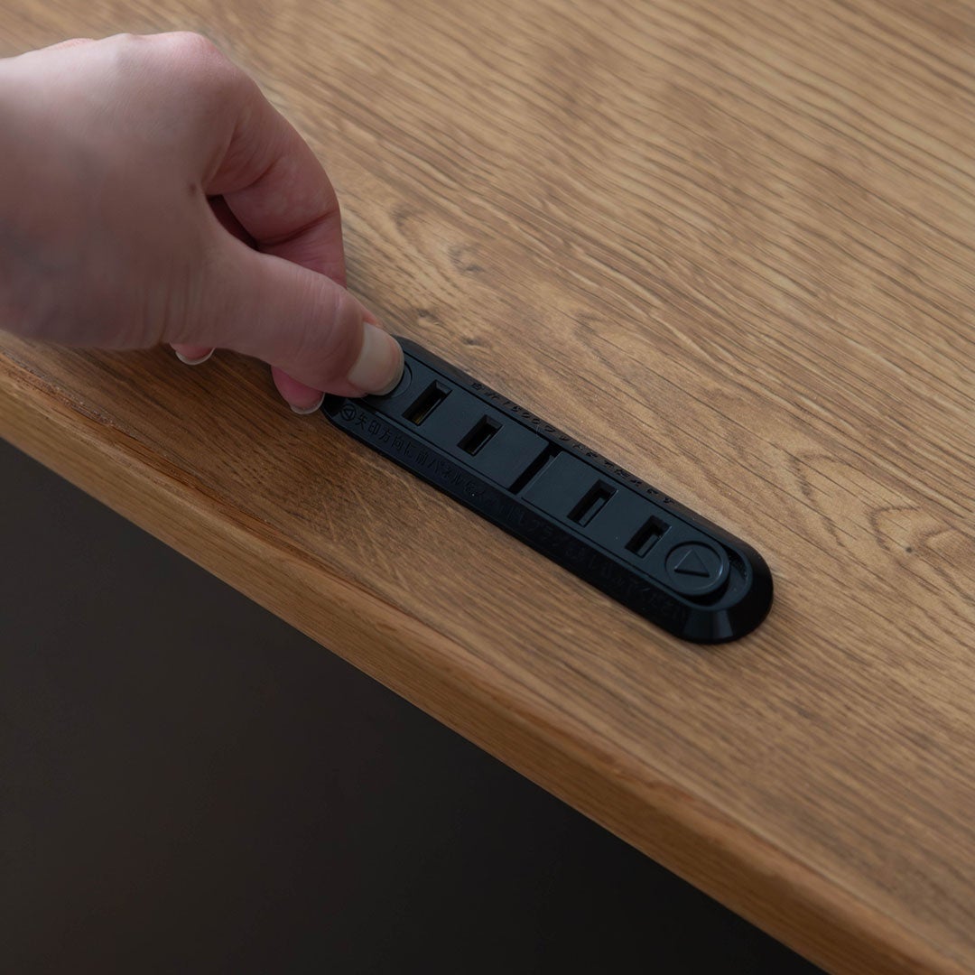背面には奥行きのある天板スペースを備え、コーヒーカップやタブレットなど小物を置くことが可能。スツールを組み合わせれば、デスクのように活用いただけます。さらに、コンセントを内蔵しており、スマートフォンやPCの充電もスムーズです。これらの細やかな配慮が、暮らしにさらなる快適さをもたらします。