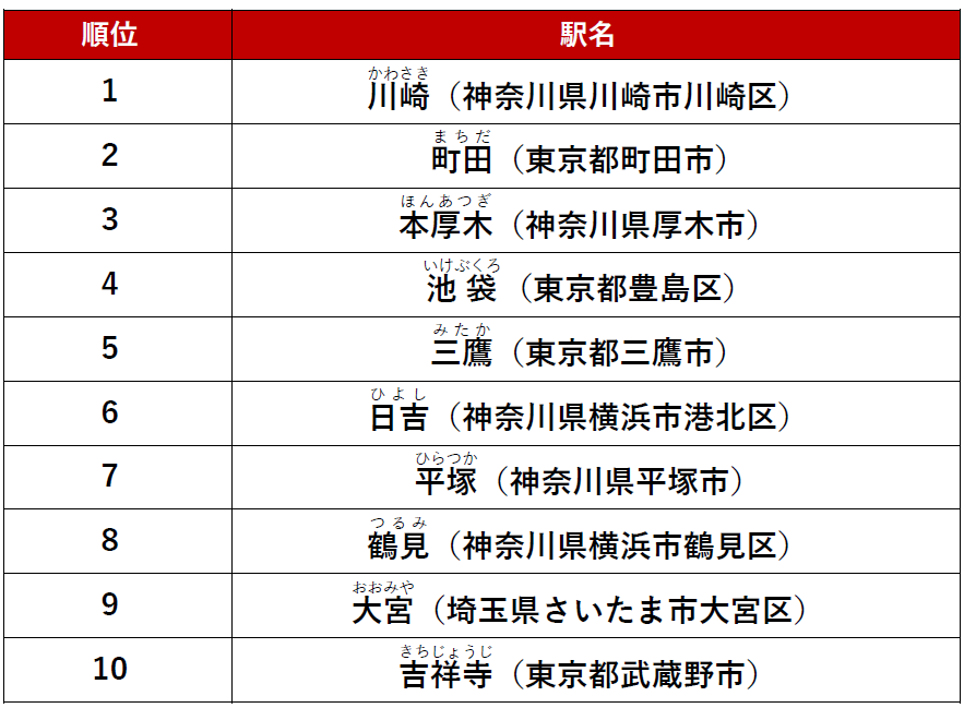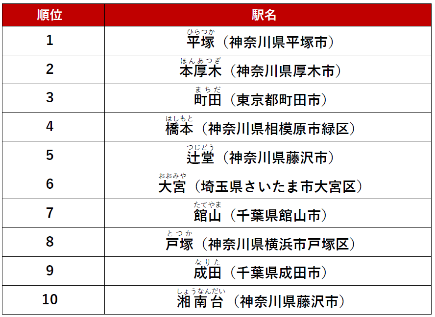 2位は「本厚木」駅、3位は「町田」駅がランクインしました。