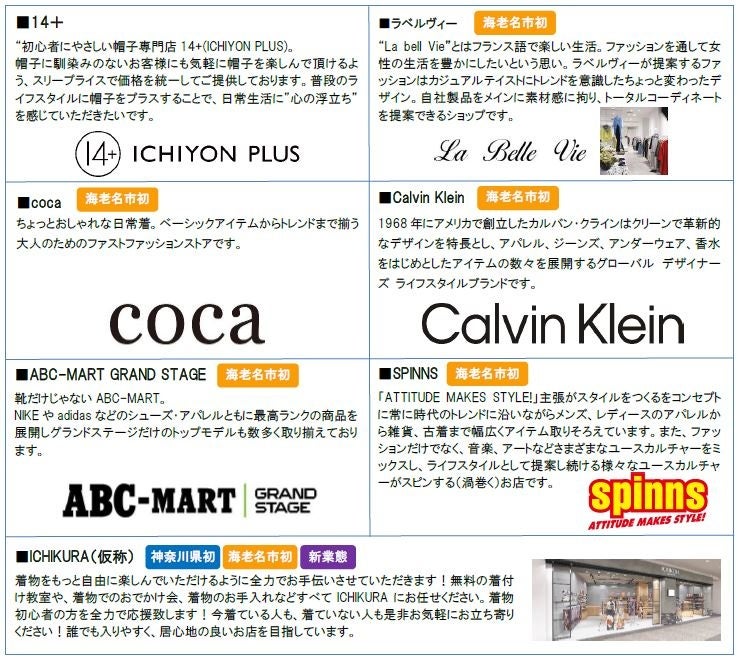 ららぽーと海老名は、本リニューアルを通じてお客さまの多様なニーズに応え、日常使いに適した店舗を拡充するほか、お客様が思い思いの時間を安心して楽しく過ごしていただける空間へと進化いたします。