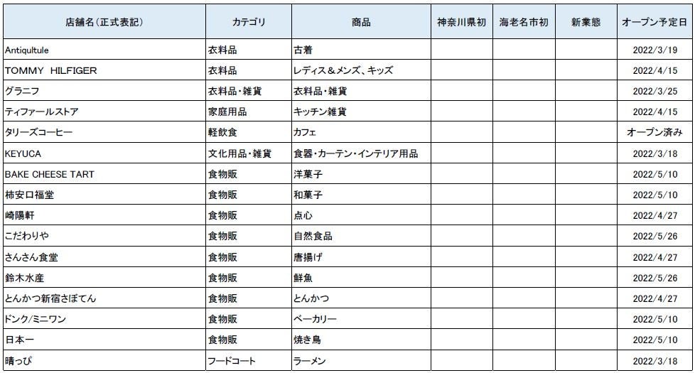 「三井ショッピングパーク ららぽーと海老名」 開業以来初のリニューアル 神奈川初出店7店舗を含む新規・改装約 4 0 店舗が 3 月 1 8 日(金) より順次 オープン