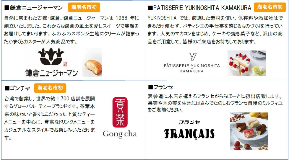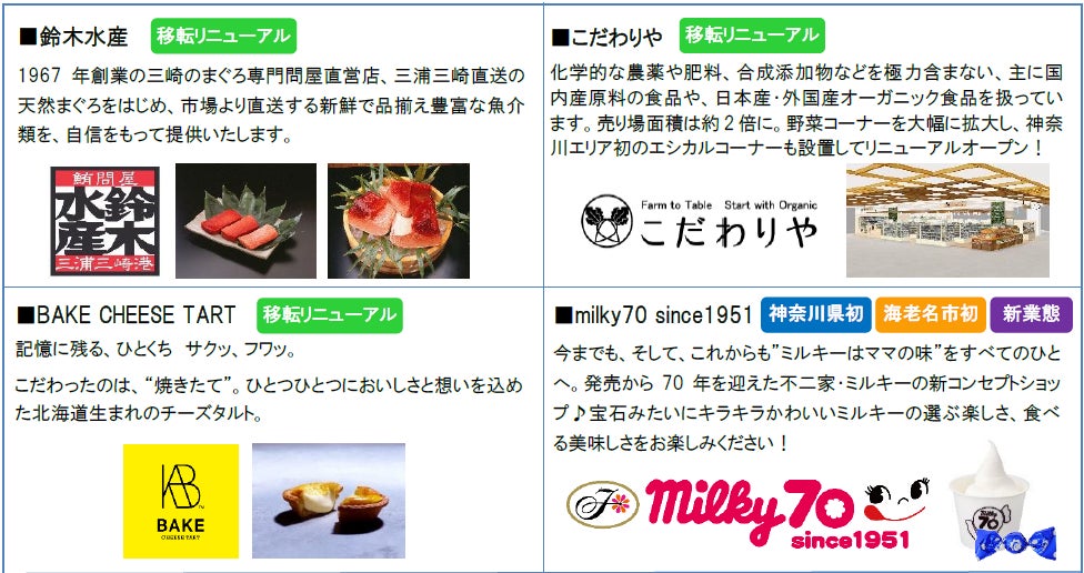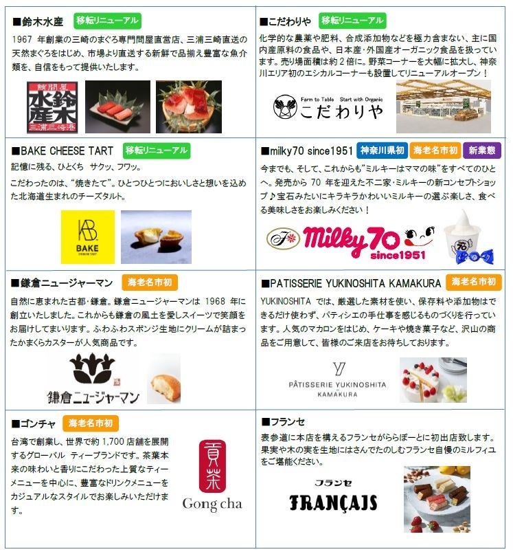 地元神奈川の名店を中心に食物販ゾーンも全面リニューアル