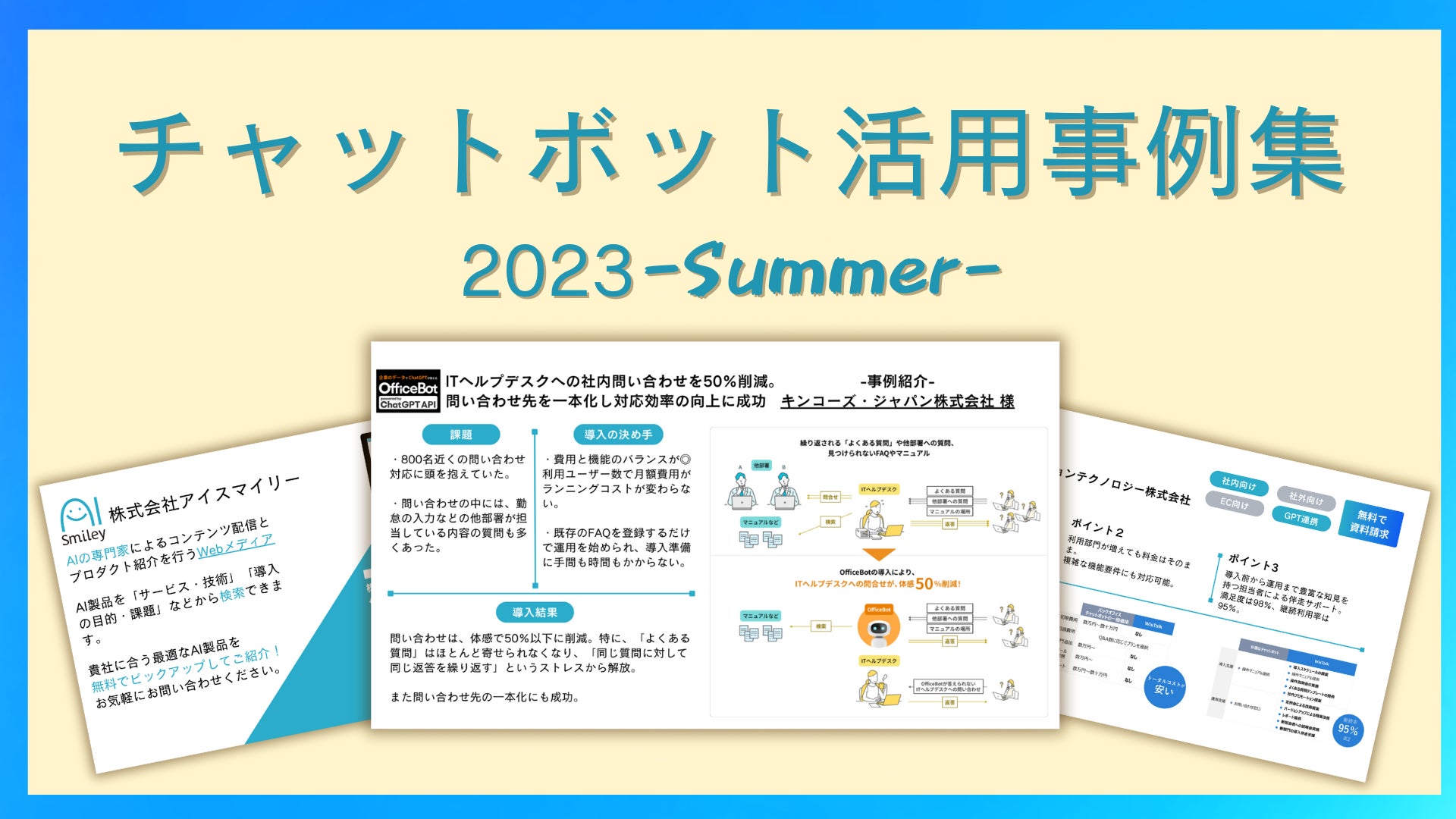 チャットボット活用事例集2023-Summer-を公開!ChatGPT連携サービスや各業界にあった製品をご紹介!