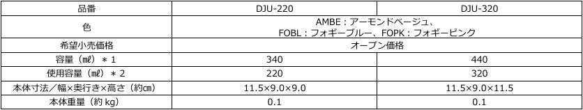 当社は、2009年よりステンレス製魔法びん構造による高い保温・保冷力が特長の「真空断熱スープジャー」を販売し、ランチタイムにスープをとり入れることを提案してまいりました。電子レンジがない環境でも温かいスープを楽しめる「真空断熱スープジャー」に加えて、軽くて電子レンジで再加熱可能な『スープマグ(DJU-220/320)』を販売することで、ご自身のライフスタイルや昼食を食べる環境にあわせてスープ容器をお選びいただけます。