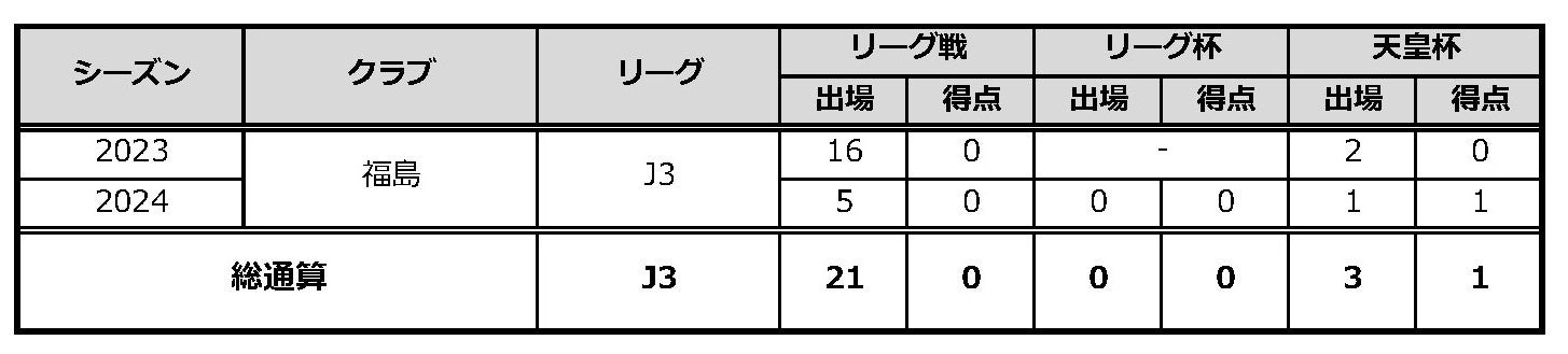 サッカー歴:西一サッカースポーツ少年団→S.F.C.ジェラーレ→ベガルタ仙台Jrユース→ベガルタ仙台ユース→仙台大→福島ユナイテッドFC