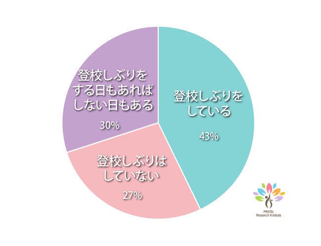 昨年9月にパステル総研が行ったアンケート調査によると、オンライン授業/不登校中以外の回答者の73%がお子さんに登校しぶりがみられました。(https://desc-lab.com/72220/?pr)
