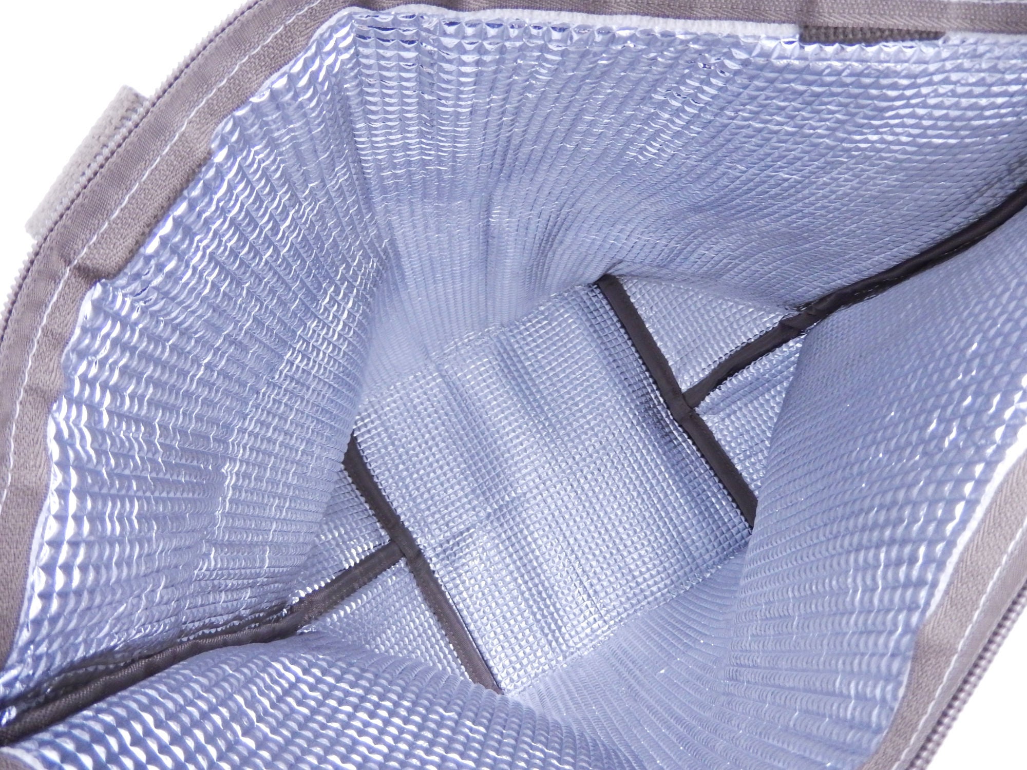 高さ37cm、幅42cm、マチ21cmの大きめサイズで、表地はキャンバス地、裏面はアルミ蒸着シートのしっかりした作りの保冷バッグは、日々のお買い物だけでなく、おでかけやピクニックなどのレジャーにもぴったり!