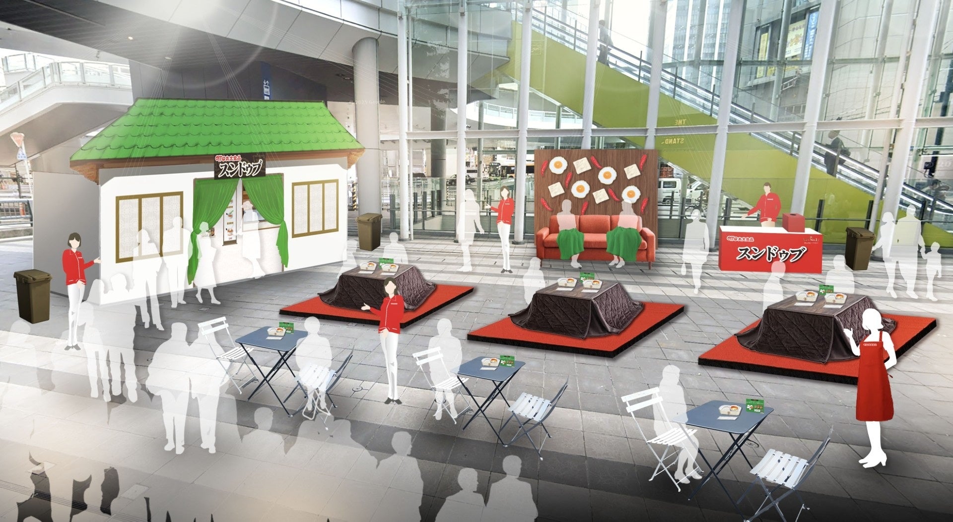 この魅力をより多くの方に知っていただきたく、昨年に引き続きイベントブースは「おうちスンドゥブ」をテーマにデザインしました。高さ約4メートルの家を設置し、お母さん役のキャストに案内され家に入ればスンドゥブセットを受け取ることができます。また喫食スペースにはこたつを設置し、フォトブースではスンドゥブのパッケージを模したブランケットを置いたソファなど、わくわくするコンテンツをご用意しています。さらに、抽選会も実施予定で豪華景品をご用意しておりますので、ぜひご参加ください!