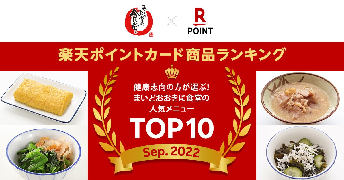 株式会社フジオフードシステム(以下「フジオフードシステム」)と楽天ペイメント株式会社(以下「楽天ペイメント」)は共同で、「楽天ポイントカード商品ランキング」において「健康志向の方が選ぶ!まいどおおきに食堂の人気メニューランキングTOP10」を発表しました。