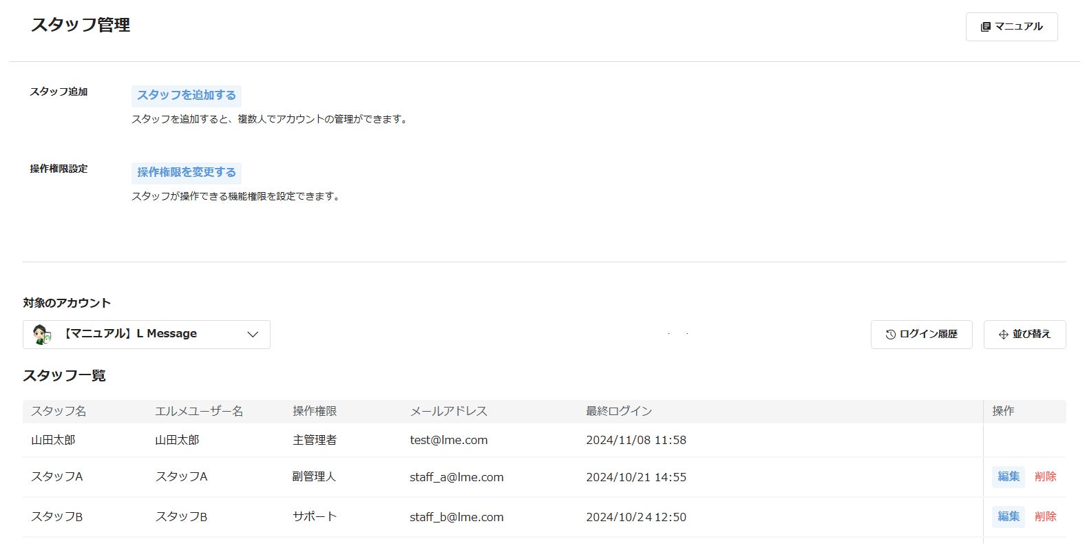 lmessageのスタッフ管理機能で複数アカウントの運営が簡単に