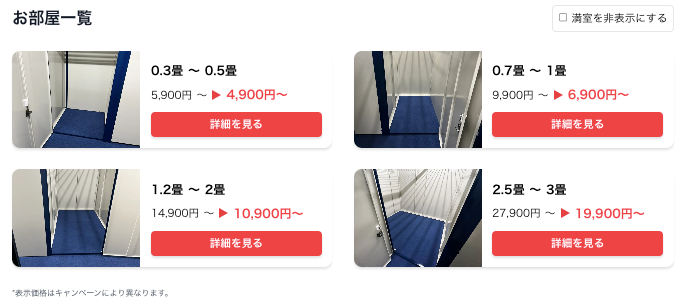 荷物以上に大きな部屋を借りてしまうことや、狭すぎて荷物が入らなかったなんていうトラブルを回避できます。