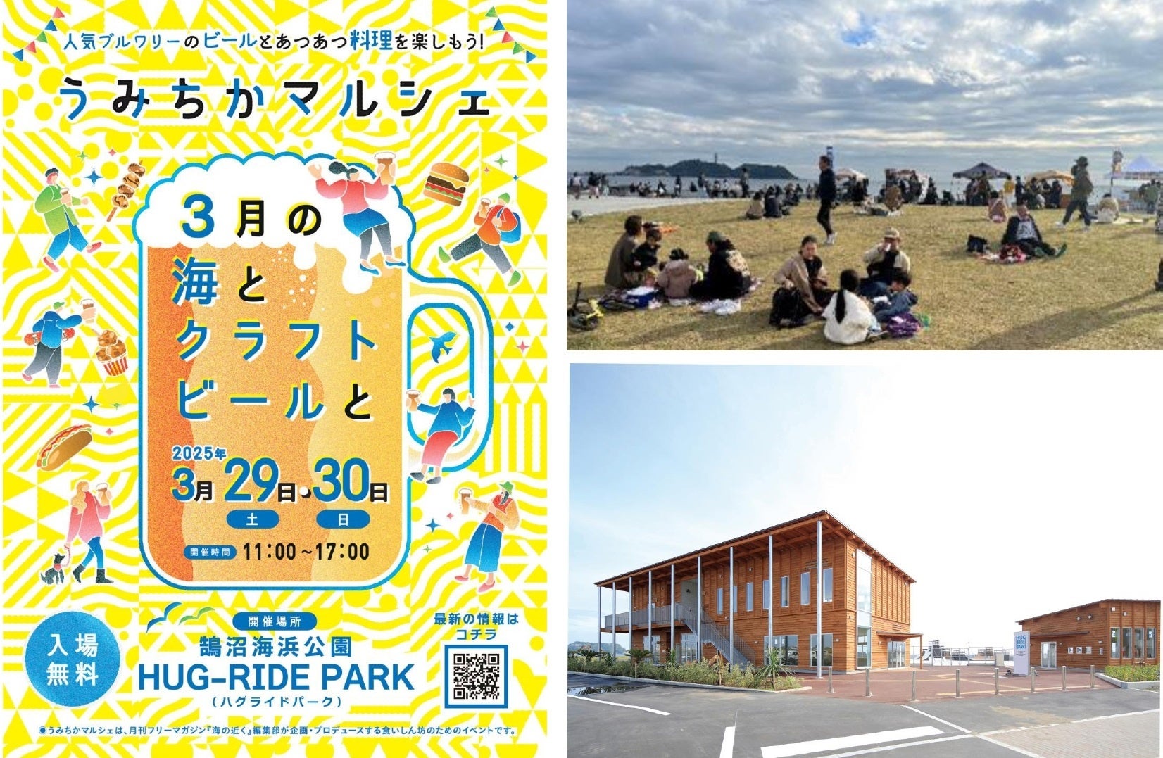【鵠沼海浜公園 HUG-RIDE PARK(藤沢市)】湘南・西湘で話題のクラフトビールとグルメが楽しめる「うみちかマルシェ 3月の海とクラフトビールと」の第2弾を3月29日(土)、30日(日)に開催!