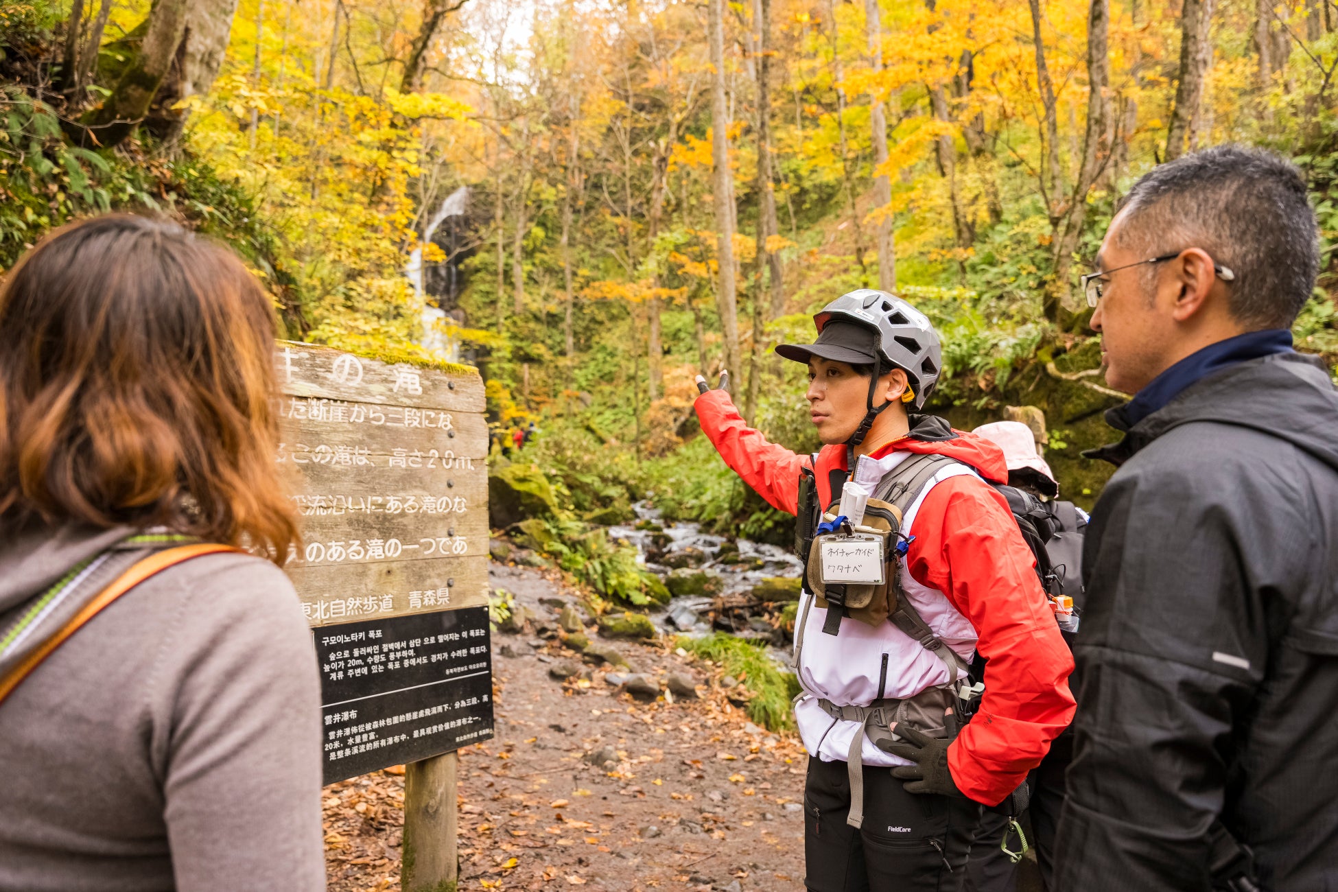 「エコツアーガイド養成講座初級コース」を受講する研修生が、石ケ戸~雲井の滝の3㎞をランブリングしながらガイドします。ゆっくり奥入瀬の魅力を堪能したい方におすすめ!