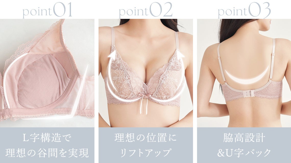 L字構造でバストをしっかり引き寄せて、自然で綺麗な谷間を作ることができます。