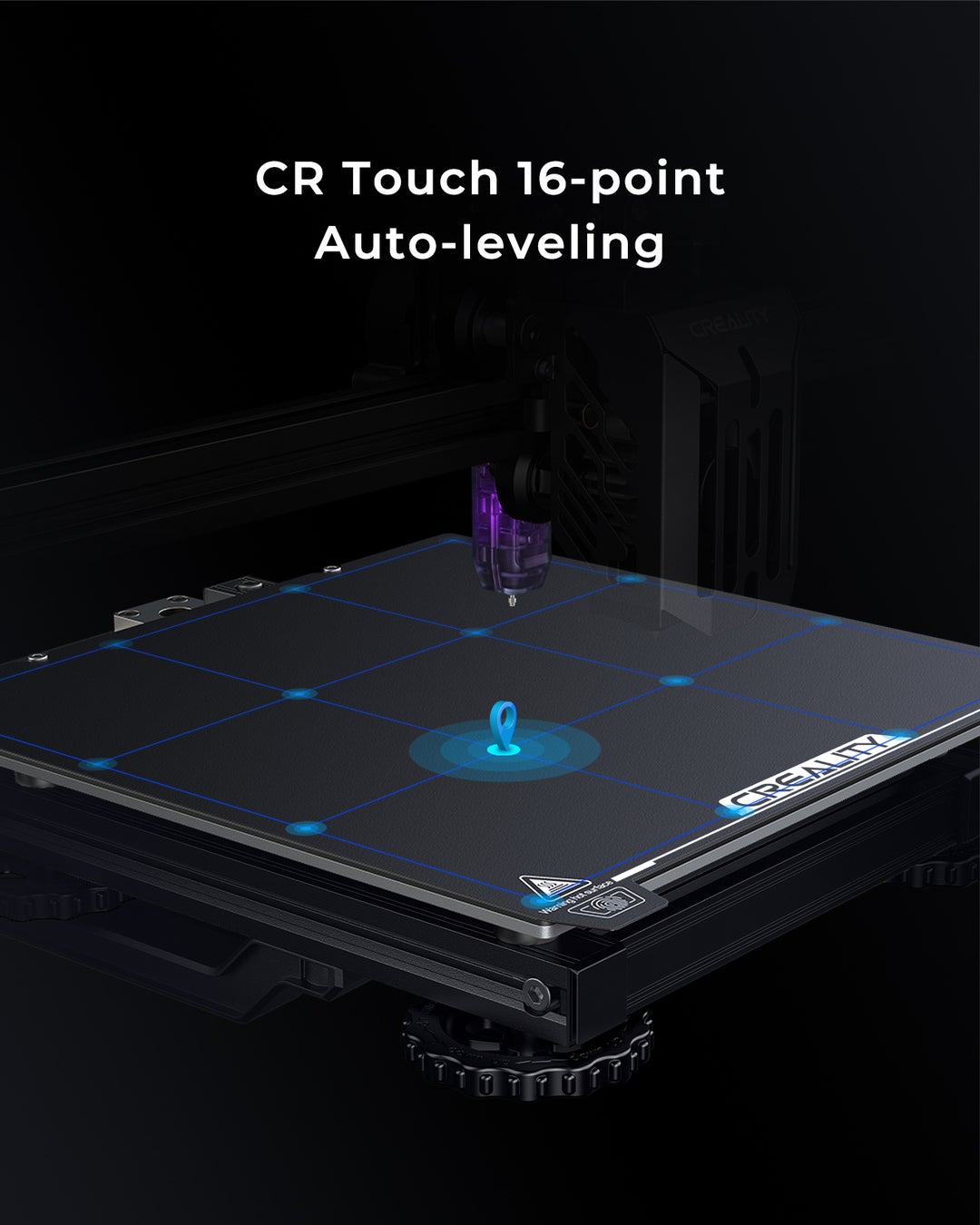CRタッチを搭載し、16ポイントの自動レベリングは、ヒートベッド上のポイントの印刷高さを補正してすばやく完了し、簡単かつ正確にレベリングできます。