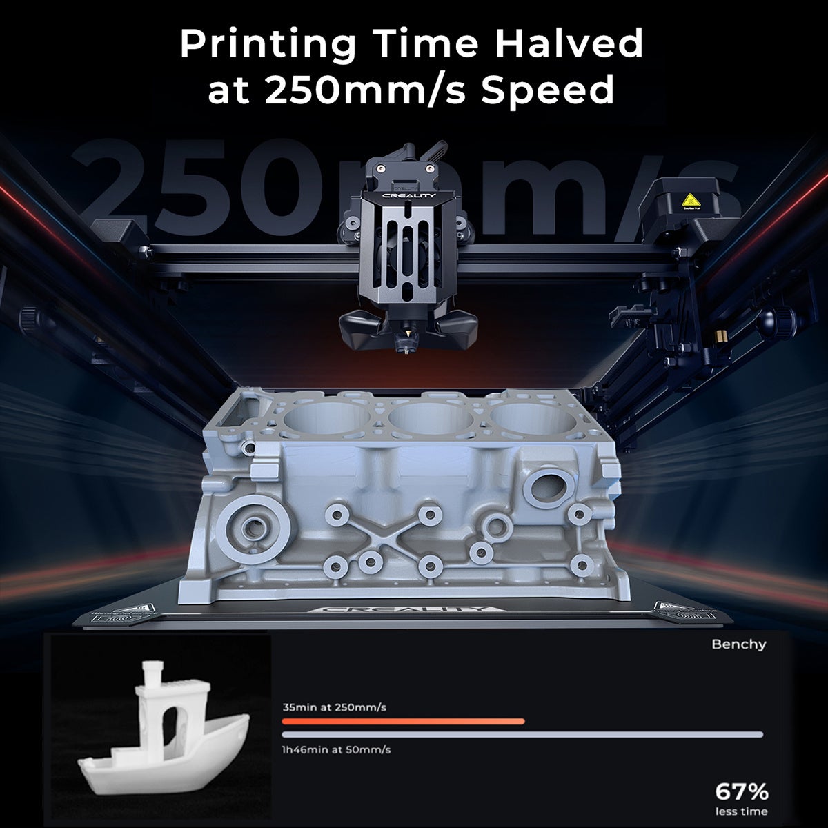 Creality Ender-5 S1は、Y軸に42-48の高トルクモーターとスチールトランスミッションシャフトをカスタマイズし、2000mm/s2の加速をサポートし、250mm/秒の高速印刷を実現します。